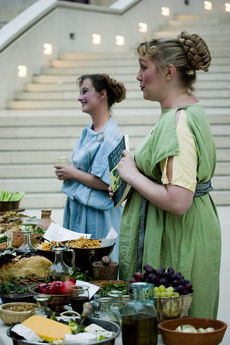 Roman Food at the British Museum - Two 'Vicas' LadiesNowadays nobody could imagine Italian cuisine without tomatoes, aubergine, potatoes, maize or pasta as we know it today. The ancient Romans had none of those ingredients available to them. Then what did they eat (besides flamingo)? I visited the ‘Feasting’ event at the British Museum to find out.
