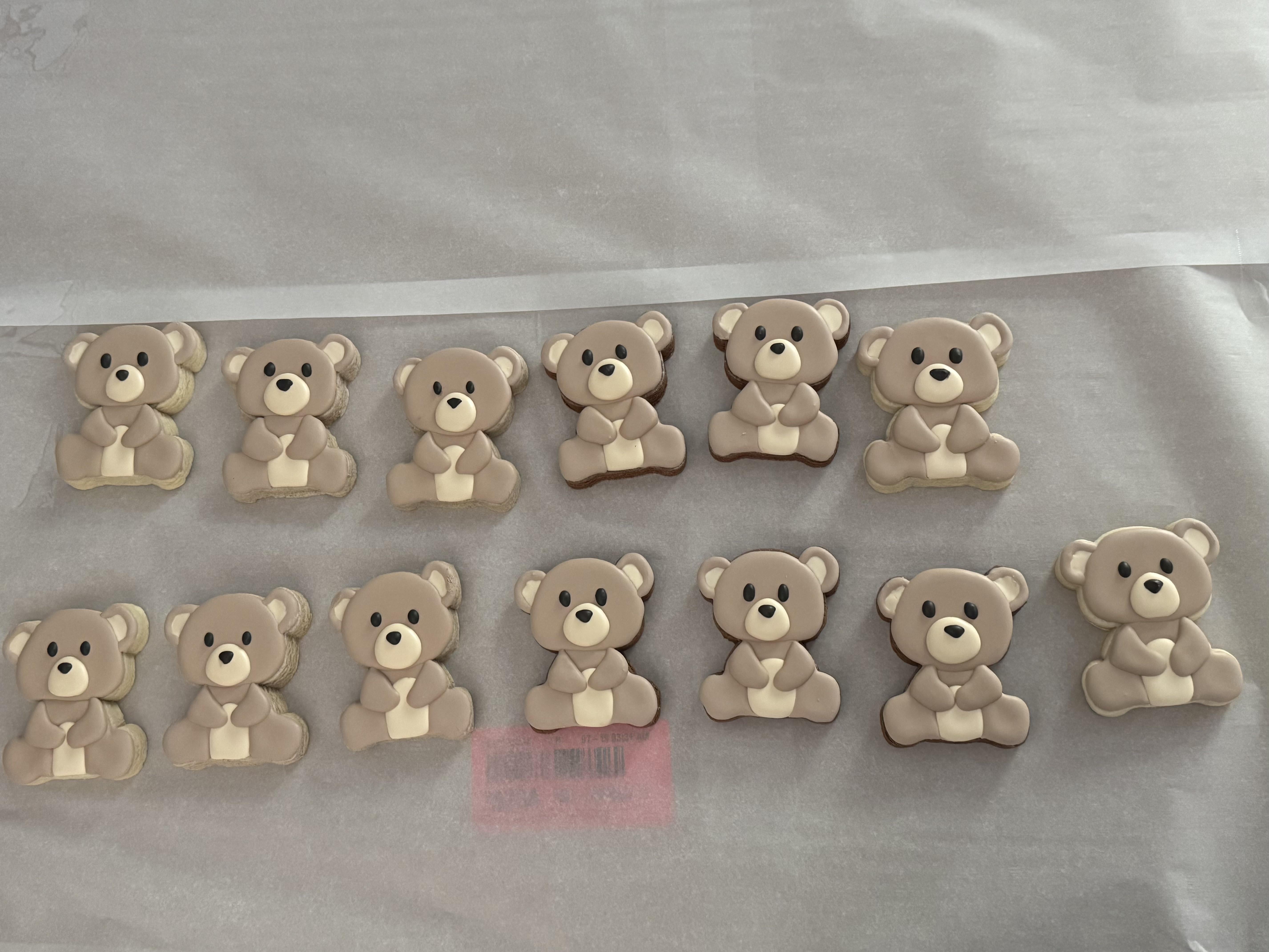 I think they’re very cute!!! As a perfectionist myself, I can always find flaws in the individual cookie but when I look at a mass of them, like this, you can really see how good they are! A customer will almost never be as critical as you are. I think your monochromatic scheme turned out great, and the puff on your icing is wonderful. If I zoom in on each individual cookie, I can see the ears were maybe a tiny bit challenging for you. But I challenge you to go look at your favorite cookie artists and zoom in on each individual cookie. A lot of them only post a few, but if you can watch videos where you can see other cookies in the background you can find flaws in their cookies too!