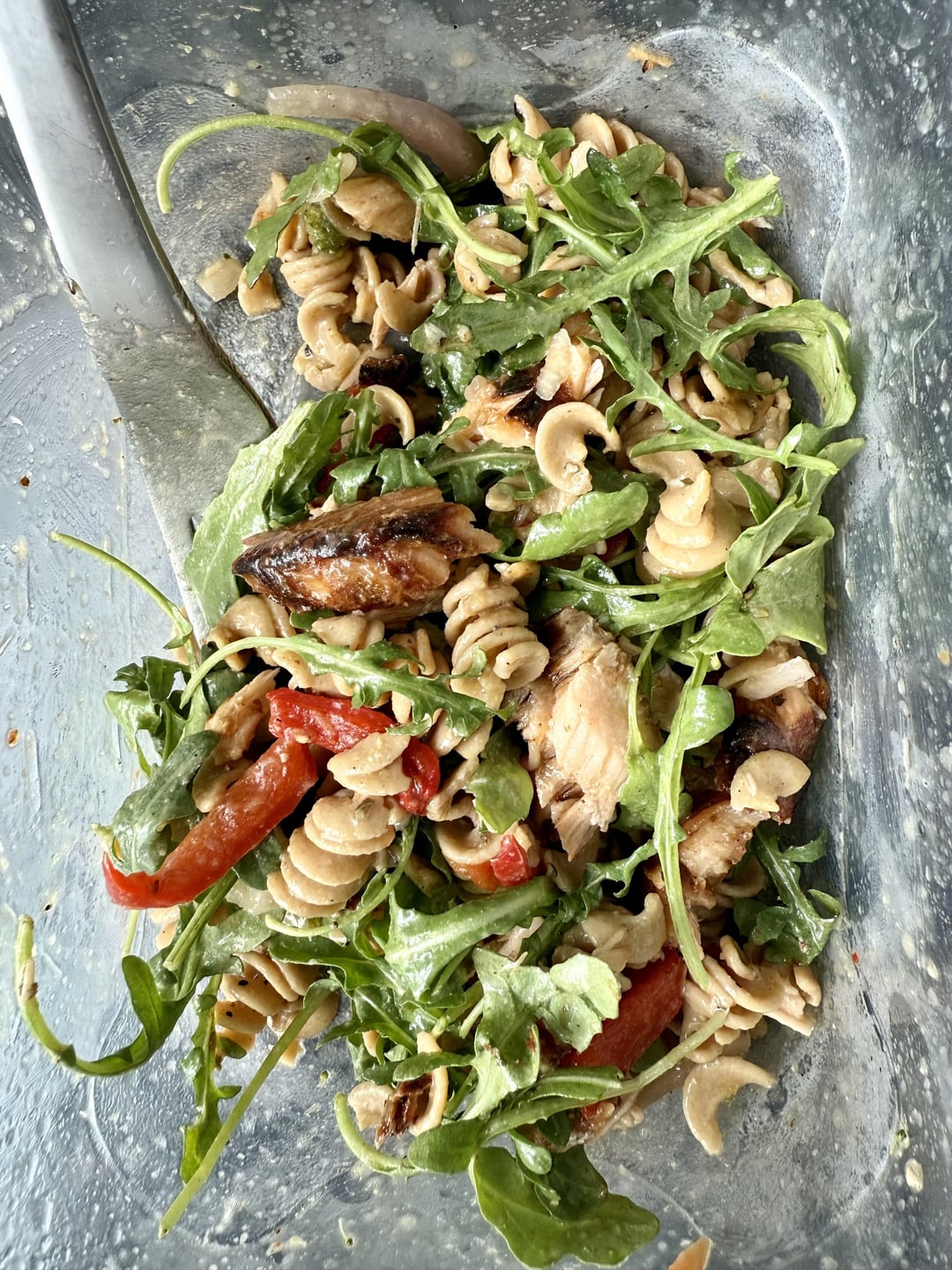 Do you like tuna salad? Try making tuna-salad-style salmon. I’m having salmon tonight as what we call “cooked poke bowl” – salmon cut in chunks and sauteed, served with rice, cucumber salad, edamame, a touch of spicy mayo. Sometimes I wrap all that in nori and make a (cooked) sushi burrito.