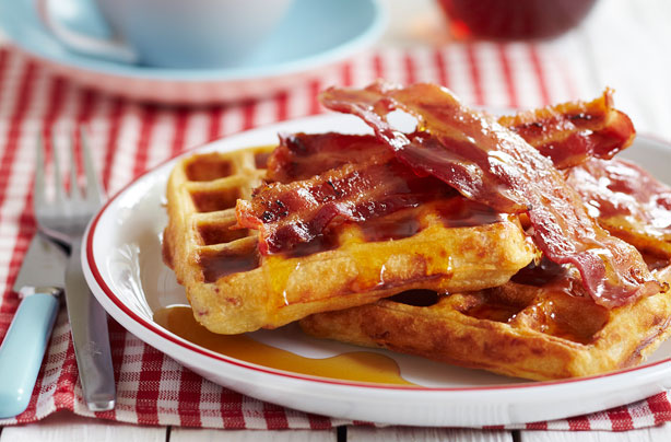 Waffles! Buy an electric waffle iron and you won’t believe how quick it is to make waffles. You just mix the batter, pour it on a waffle iron and shut the lid – in 6 minutes you’ve got warm waffles, you can make waffles from start to finish in 10 minutes. You can make them savoury as well by putting chopped bacon in the batter and serve it with chicken in a chasseur sauce or you can put bacon and maple syrup on it. Waffles are one of the quickest things to make and they’re delicious when you eat them warm.