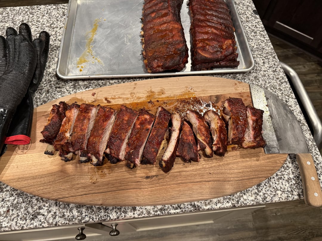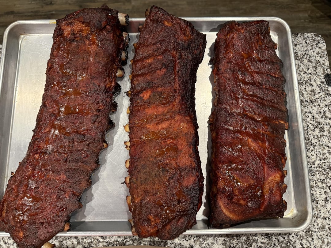 I took the jump and smoked some ribs. I’ve only been an Egg head for a month and love it. Used three different rubs but Meat Church Honey Hog was the favorite. Sauced with Ogre Sauce. Next time I’m using a darker sweeter sauce.
