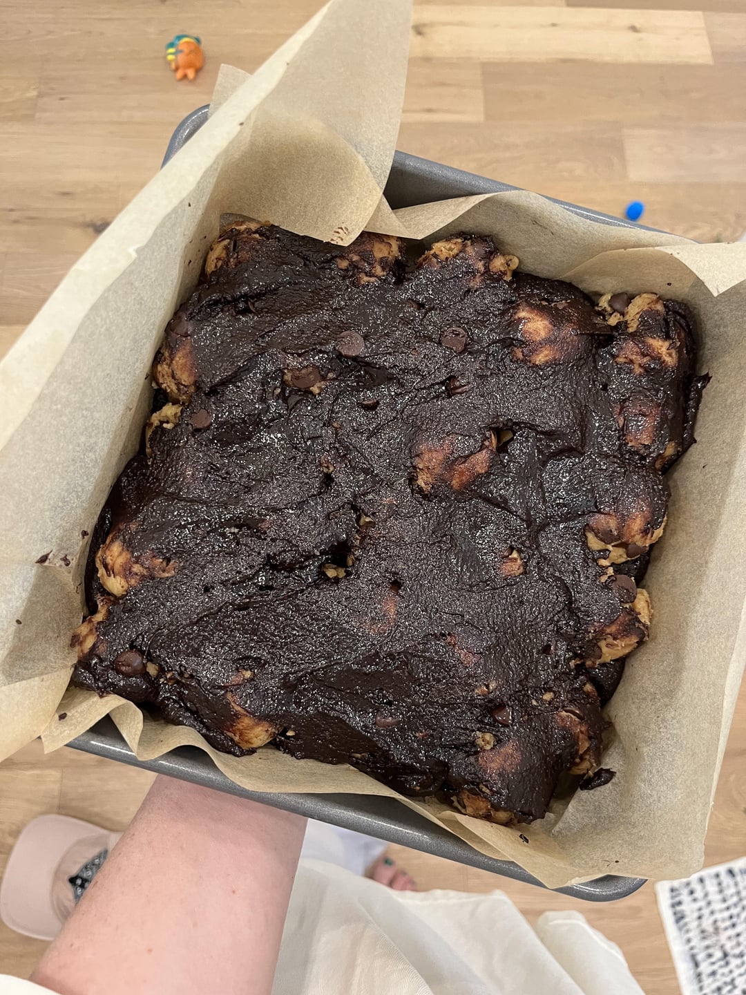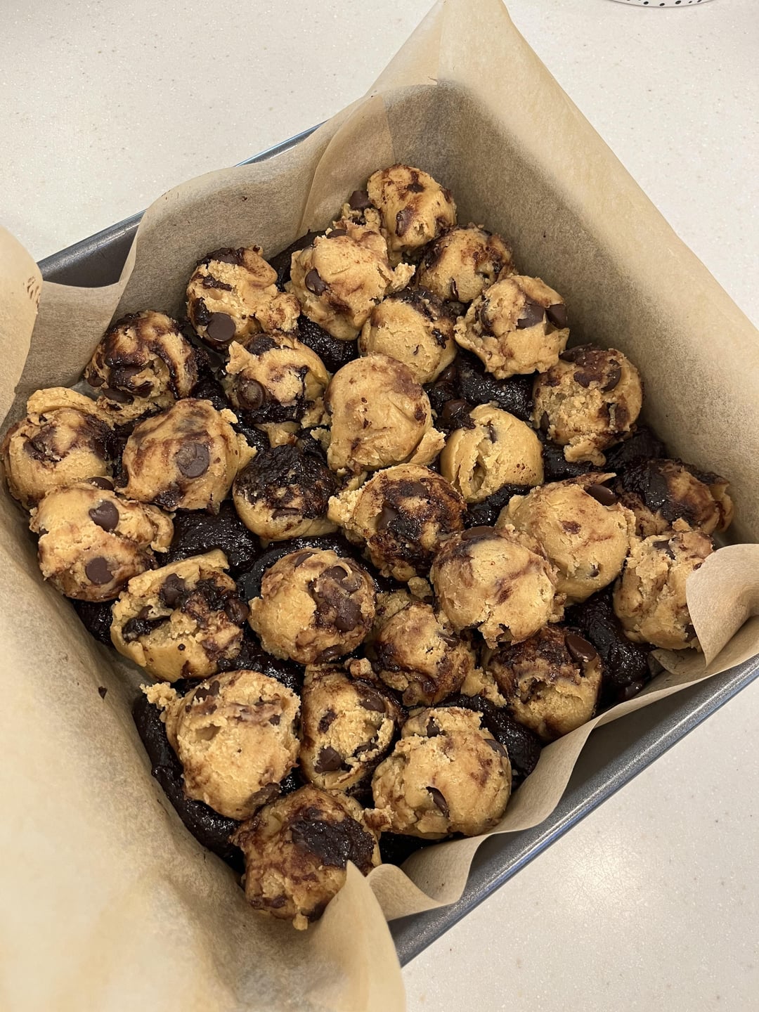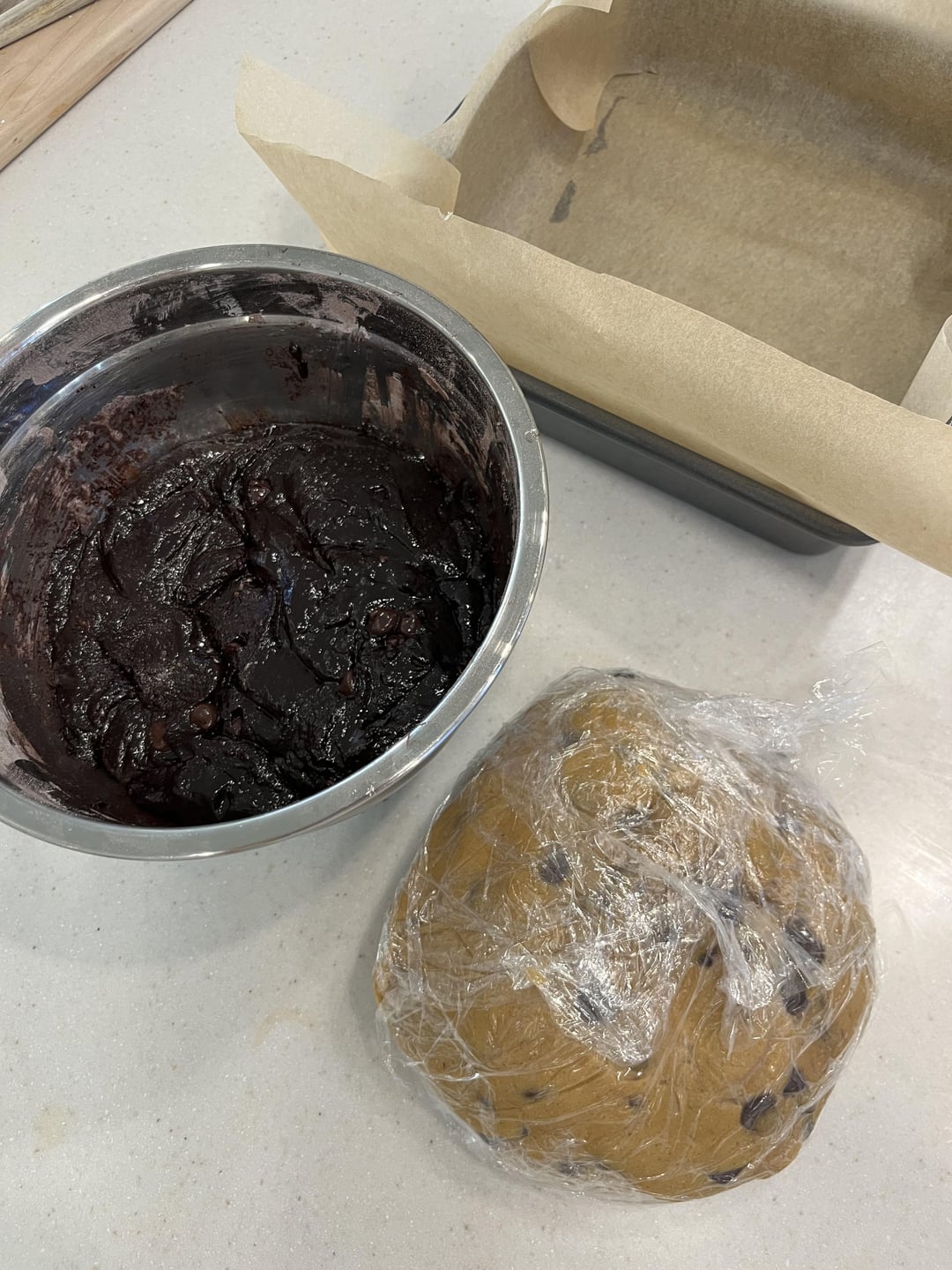 Used “Best Homemade Brownies” recipe by Love & Lemons + “Chewy Chocolate Chip Cookies” by Sally’s Baking Addiction (in Sally we trust, Hail Sally) ~ I let the chocolate chip cookies chill for like 3 hours and then made the brownie dough! I baked it on 375 covered in foil for 20 and then uncovered for about 50-55 minutes. They were a little underbaked but omg we will risk it for the biscuit they tasted absolutely bomb. I also put a little less chocolate chips in both recipes to balance it all out.