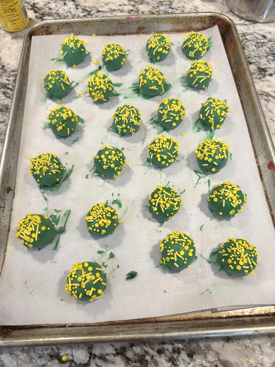 Truffles for a farm themed baby shower I’m baking for this weekend! Cows, dirt, John Deere, and tomatoes.