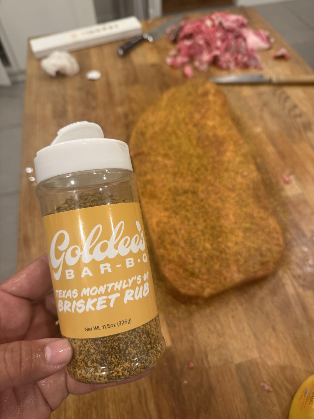 I tried to see if I could recreate the Goldie’s Brisket at home on my Traeger. I got a prime brisket from Costco that was like 18 lbs but probably around 10-12 after I trimmed it.