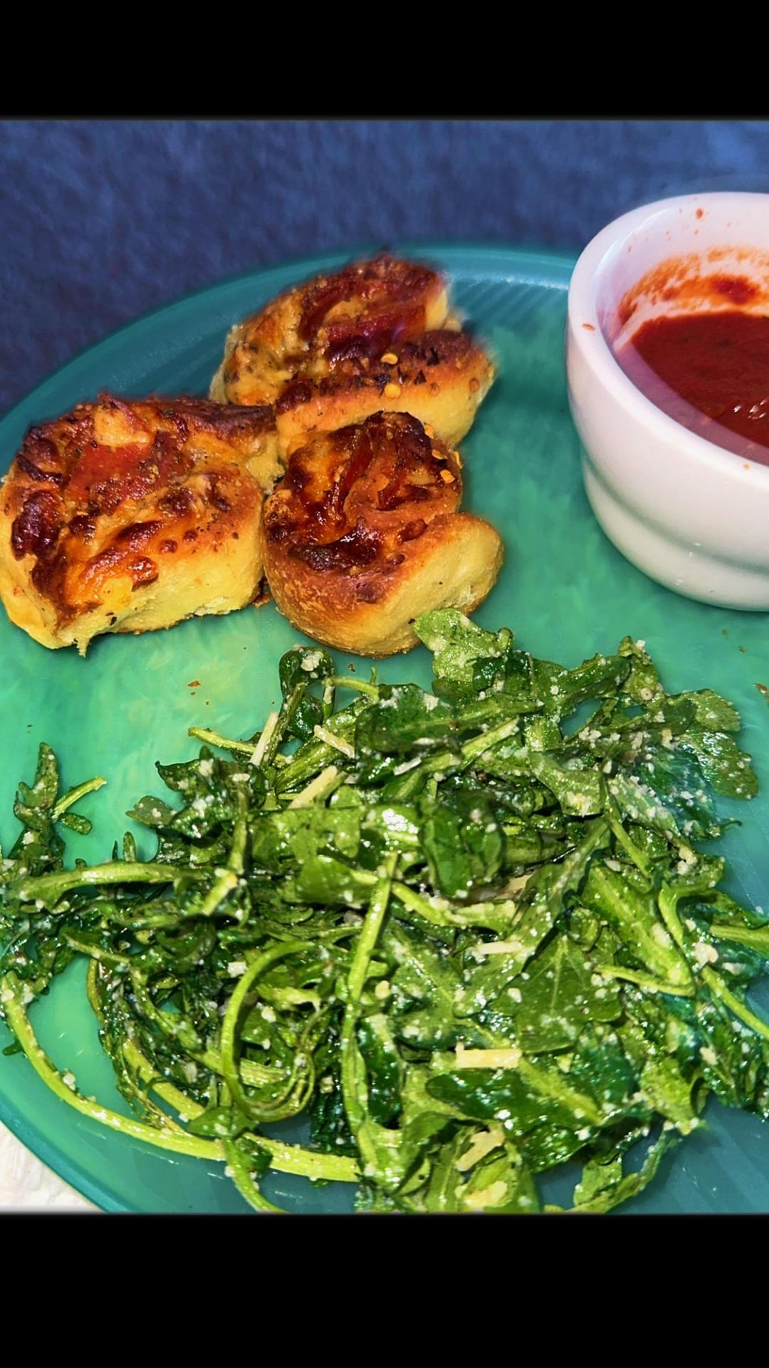 This one surprised me. I did add some Italian seasoning and red pepper flakes to the pinwheels, and I found that getting the dough to maintain form took longer than the instructions claim, but this meal was really good! The light and fresh arugula salad paired nicely with the heaviness of the main entree. It was a fun weeknight dinner and I would def order it again.