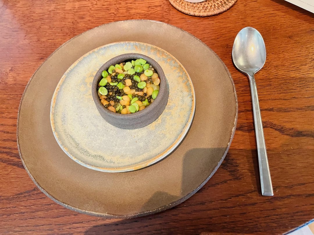 This is the one and only course that I didn't like as I'm not a fan of cuttlefish. I think it comes down to whether you like the texture or not. I should have asked for this to be the vegetarian version because it also had something a bit like shoots on it, which were interlaced with the cuttlefish. I think this would be better without the cuttlefish. That is literally my one and only criticism of this place, and that's on me because I don't like cuttlefish.