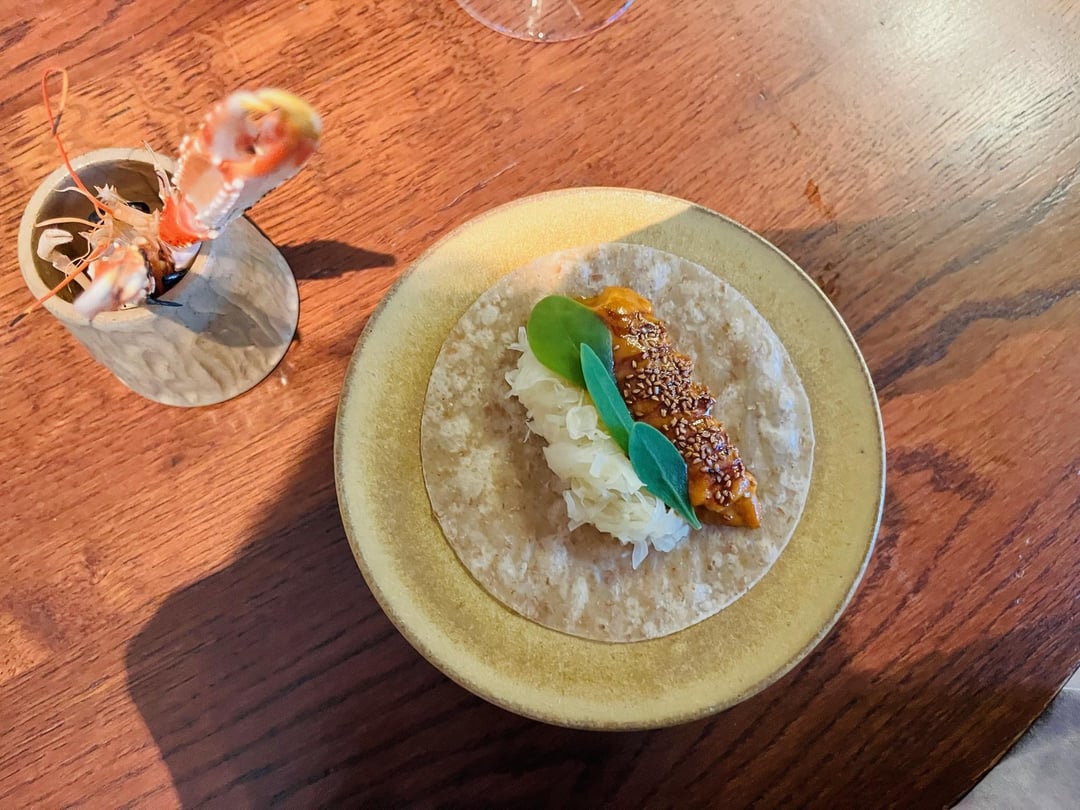 Perfect. I wish I’d have asked for two more. Also, they brought out a hand towel afterward, which I appreciated because I'd covered my face in delicious sea buckthorn. Also, I really appreciate we got to squeeze the langoustine all over the taco. A lot of places are so sanitized and keep you away from everything. This was really fun and was a bit like going out for lobster.