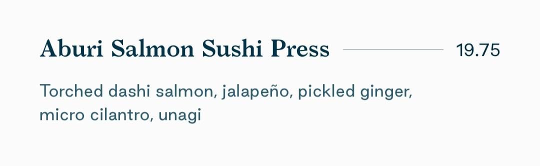 I went out for dinner yesterday and was very disappointed with what I was given. It just tasted like rice with a crunch here and there from the jalapeño. I couldn't really taste the salmon, and did not taste any cilantro or ginger as advertised (last photo).