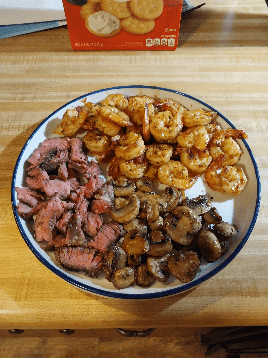 For context on the title of the post, lol… it was the first words out of my child’s mouth when walking into the kitchen right before plates were made. “Oooo, steak and mushies and skrimp. Yay!”