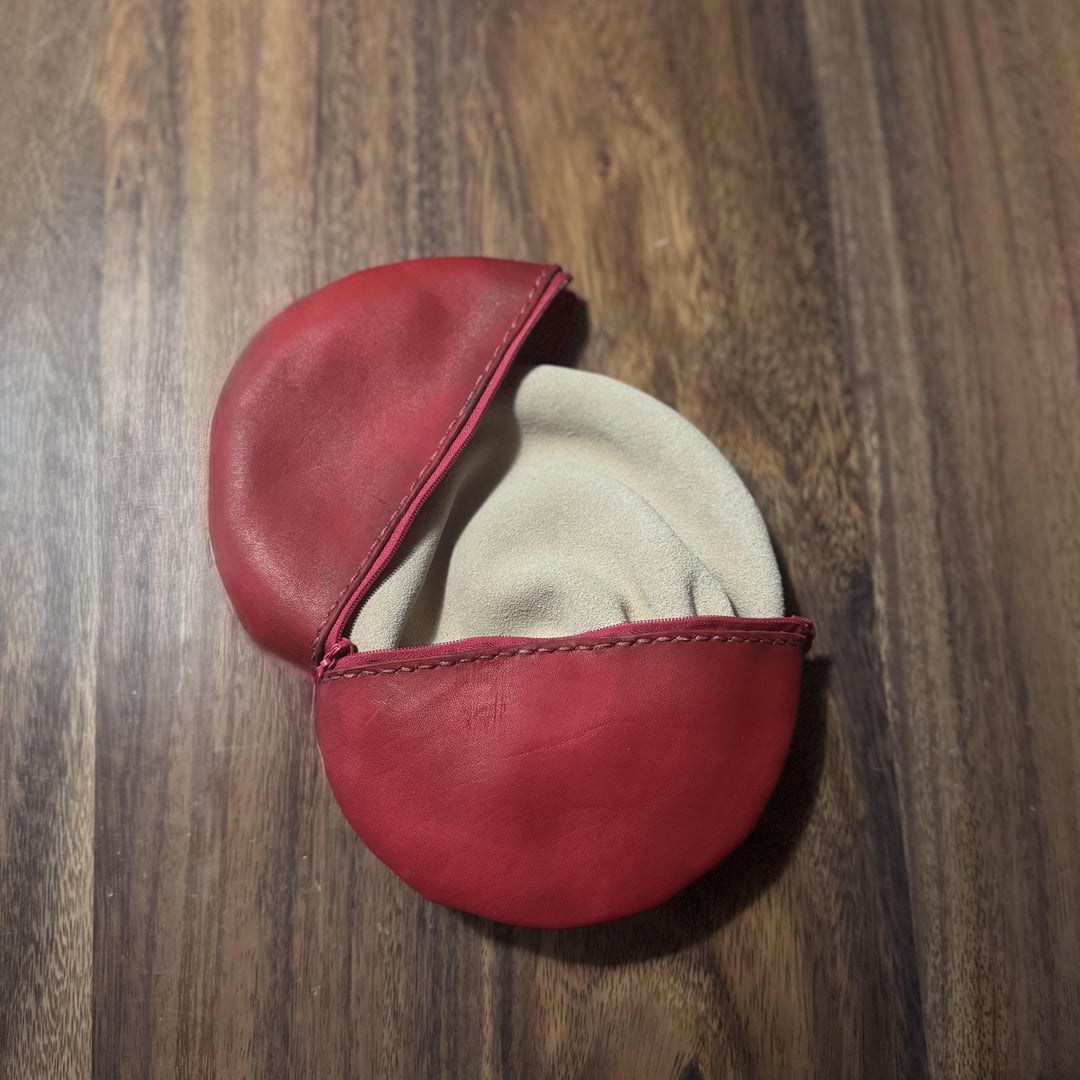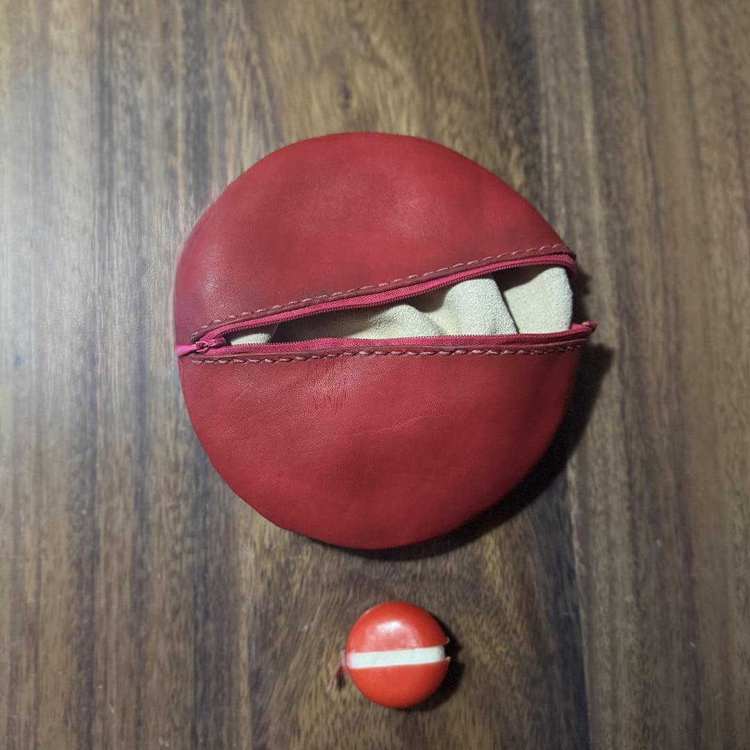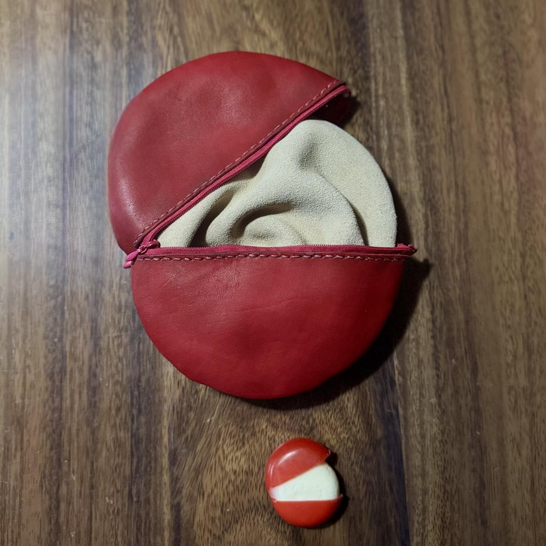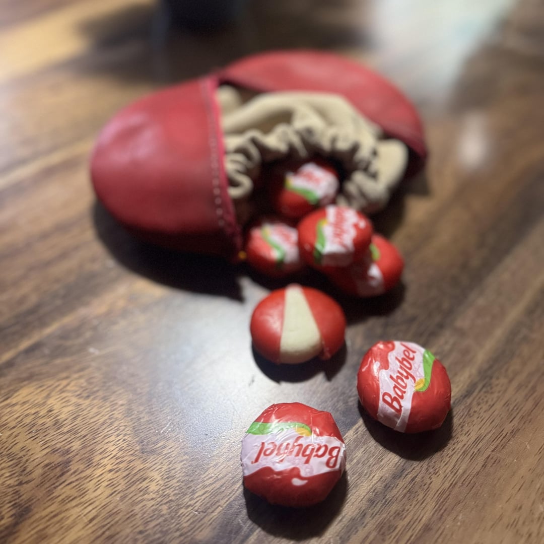 So I got cheese-spired (đ„), that I made a pouch from real leather and suede, all hand dyed and hand stitched, that looks/works somewhat like the Babybel.