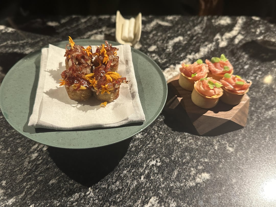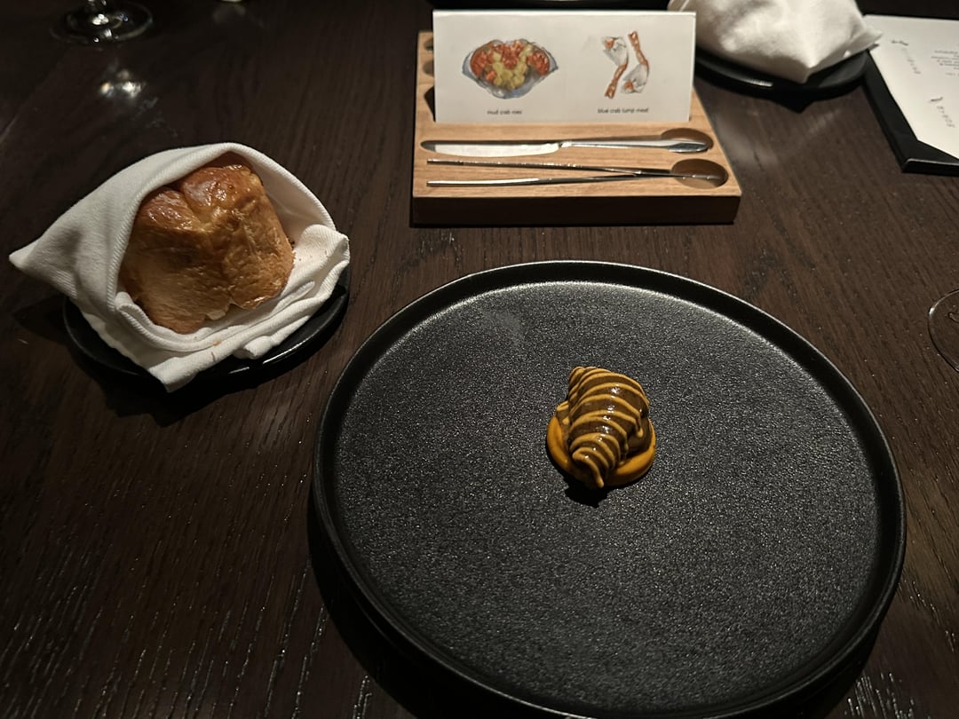 Service was a bit of a disappointment, especially for a restaurant with a Michelin star. While the staff were friendly and did a good job explaining each dish — including the story behind it and how to eat it — there were a few misses. They didn’t clear crumbs between courses, so the table felt messy by the end. Our water glasses were often left empty, and overall, we felt pretty ignored throughout the meal except when dishes were being served. It also seemed like there weren’t enough staff for the number of tables.