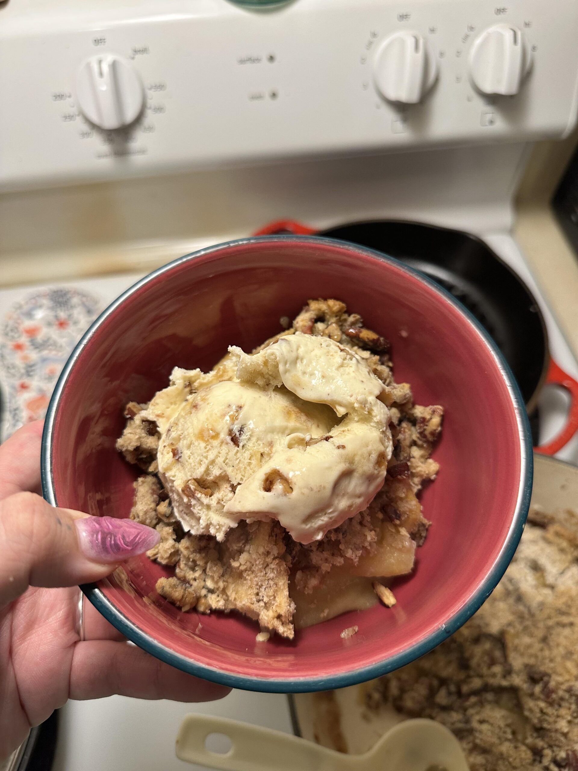 self-care is making yourself apple crisp at 9:30 at night because you’re depressed with the way your life turned out. served with maple cardamom candied pecan ice cream.