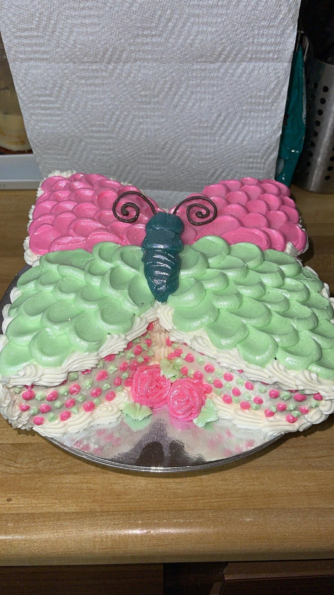 Chocolate cake with chocolate buttercream on the inside then vanilla buttercream on the outside with chocolate antenna and edible luster dustby misswitch01 Write A CommentYou must be logged in to post a comment.