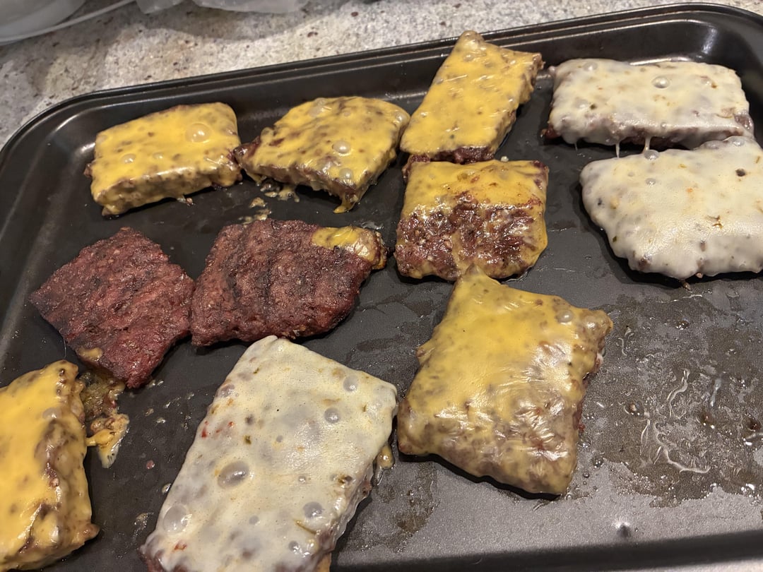 Had some friends come over for board games tonight and decided to do this for the meal based off recommendations given to me by the person who got me into sous vide. I took 6 pounds of ground beef, seasoned it. Well, vacuum, sealed it, and sous vide at 139 for one and a half hours. Rest in the fridge and then onto the charcoal Weber 22 inch. Overcooked the first batch a little bit because I’m still learning how to use the charcoal grill, but they came out great! Have been pan cooking burgers before this so these came out a lot better!