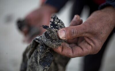 “No one knows how much tar is out there, at the bottom of the sea or other places,” said Arik Rosenblum, director of EcoOcean, the organization leading the volunteer efforts.