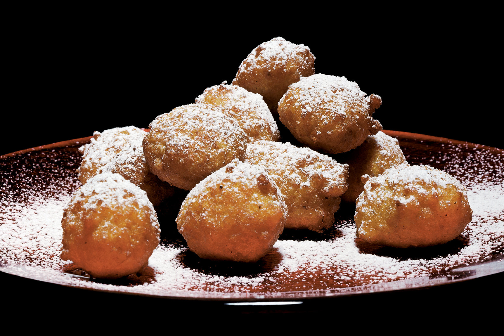 2. Place the oil in a 3-quart casserole or Dutch oven. Heat to 350 degrees. Drop heaping tablespoons of batter into the oil and fry until nicely browned. Drain on a double thickness of paper towels. Dust with confectioners’ sugar and serve while hot.