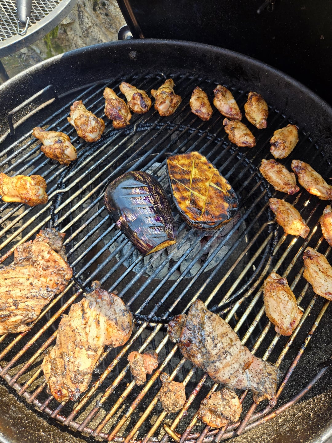 Been using the kettle a lot since I got it this summer. In addition to wings and thighs, were a big grilled veggie family.