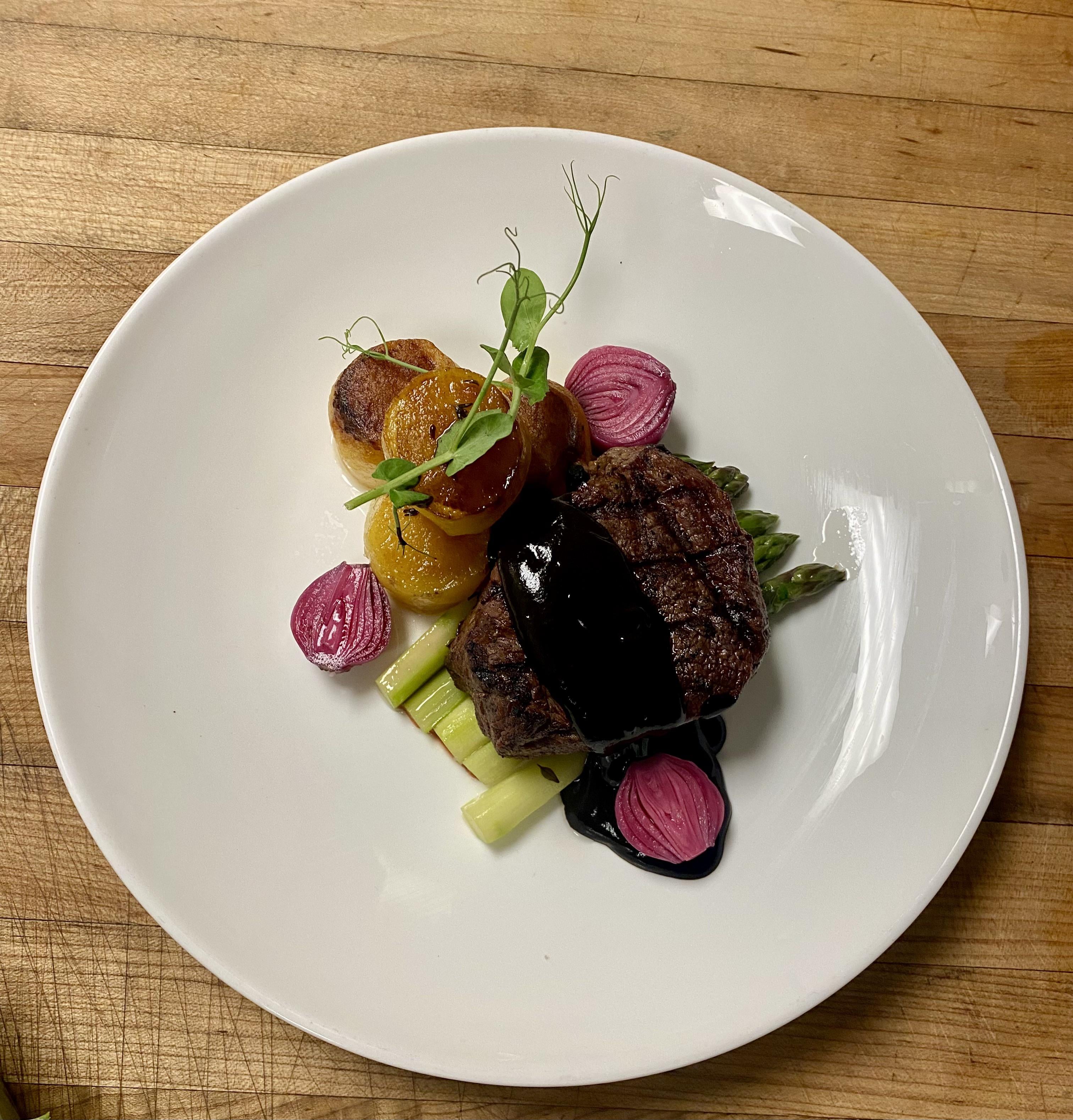 Grilled filet, potato fondant, black garlic Demi, picked pearl onions.by Lokocinco 4 Comments FamousFangs 6 months ago I’d fuck that up hard. I’d prefer some parsley over pea shoot, but I’m a classic motherfucker with my steak and potatoes. Klutzy-Client 6 months ago No criticism, only praise. Bravo chef bebopboopy 6 months ago That one longer asparagus is annoying me because it’s keeping this plate from precision-level perfection. Nice work QueefLatifahBitch 6 months ago what a beautiful sear on that filet, don’t cover it up with poop jusWrite A CommentYou must be logged in to post a comment.