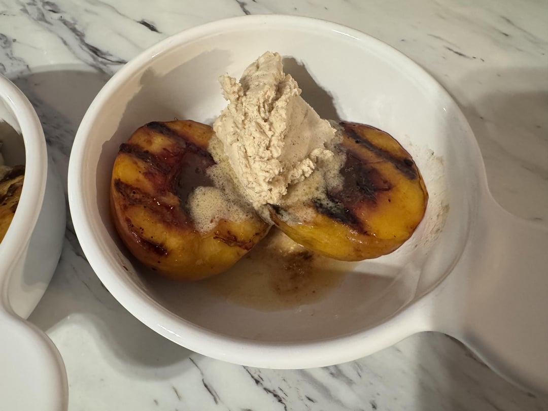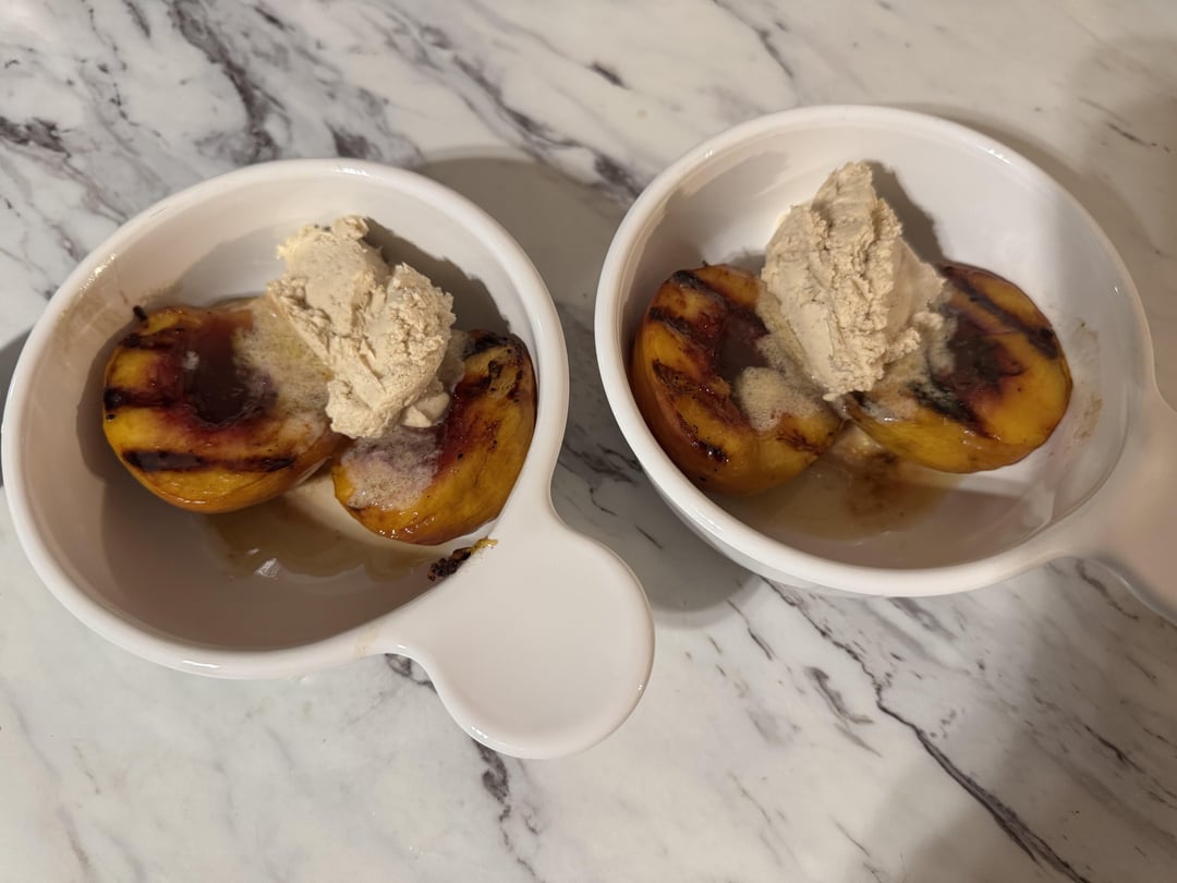 I combined two recipes from Traeger’s site: the sauce from Grilled Honey Bourbon Peaches along with with the mascarpone from Grilled Peaches with Cinnamon Mascarpone. So good!