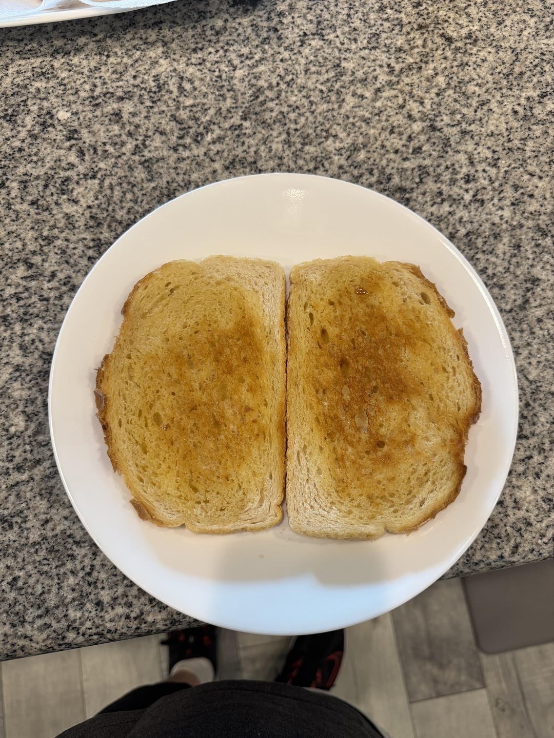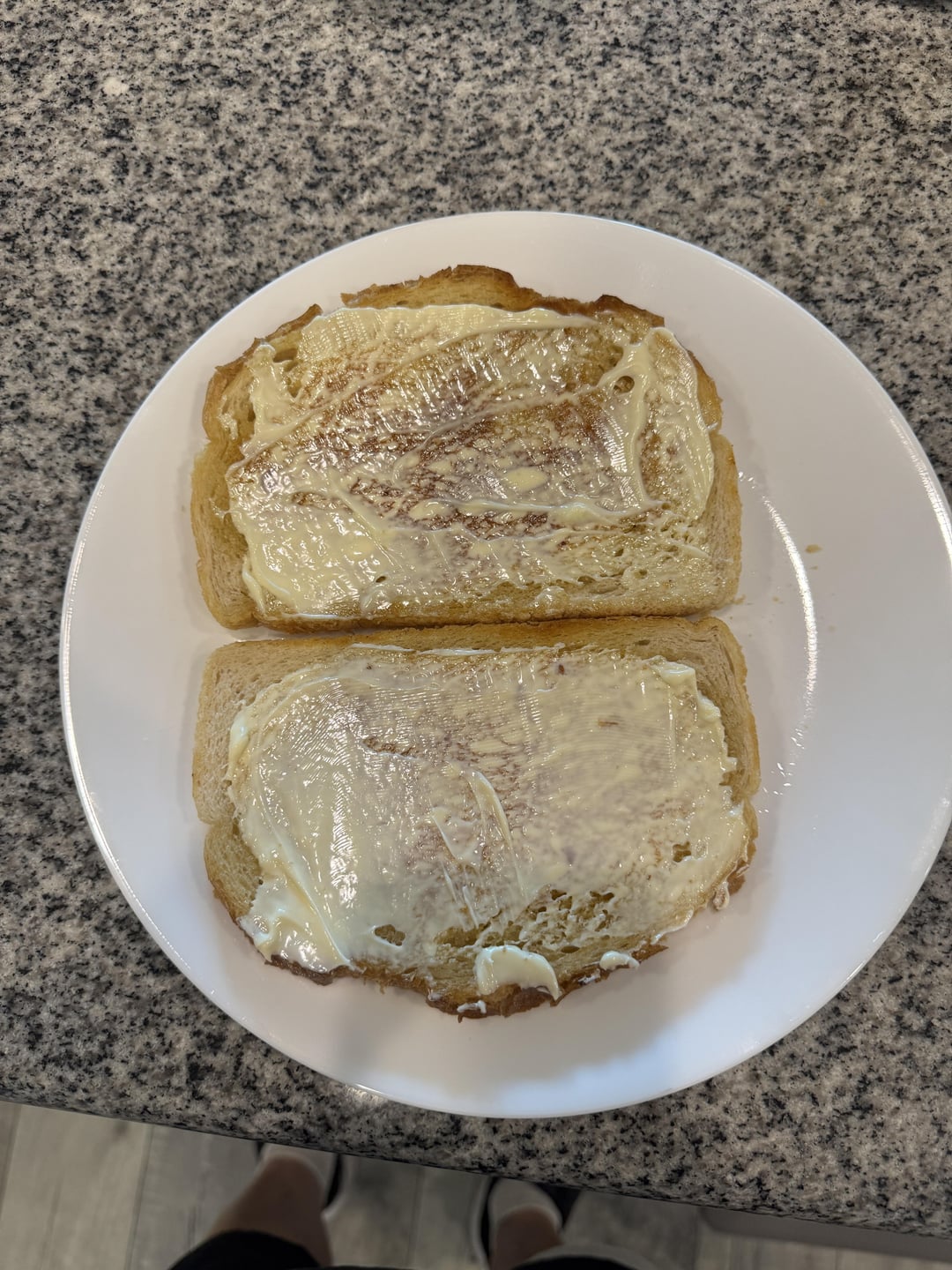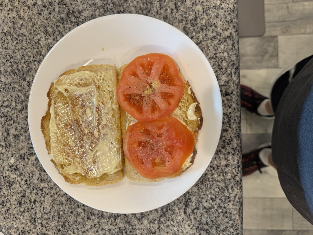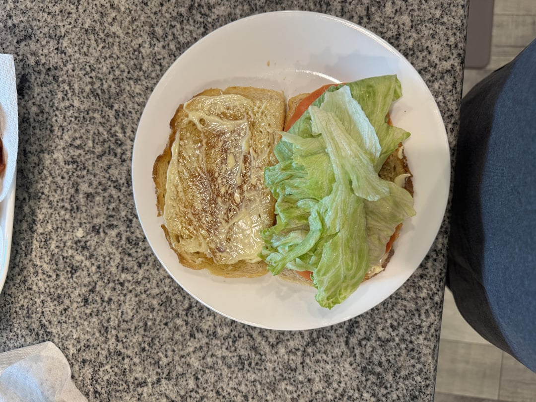 I grilled sourdough bread on the flattop grill with salted Kerrygold butter on both sides until crispy and golden brown.