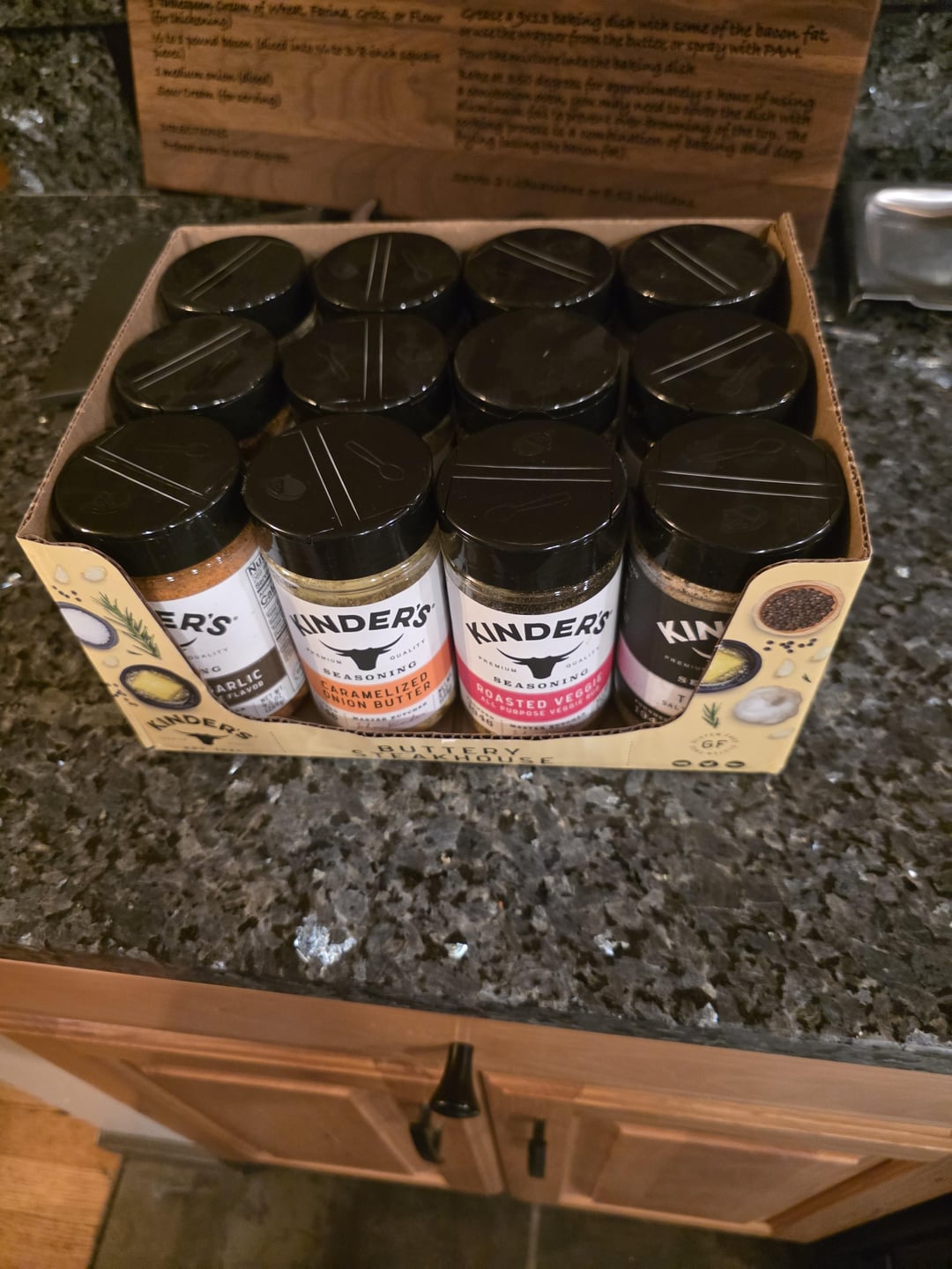 I got gifted a case of all different Kinder's seasonings. Used the caramelized onion butter seasoning on the salmon and the roasted veggie seasoning on the baby potatoes. It turned out really tasty, but I don't know if I can use this all up in my lifetime.