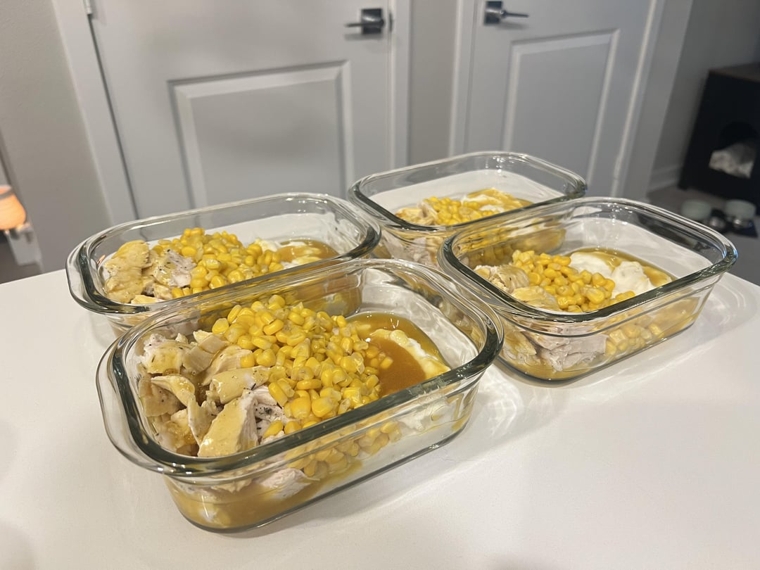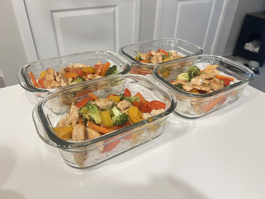 [Rubbermaid Brilliance Glass Containers](https://amzn.to/46ZOs90) (the ones the meals are in)
