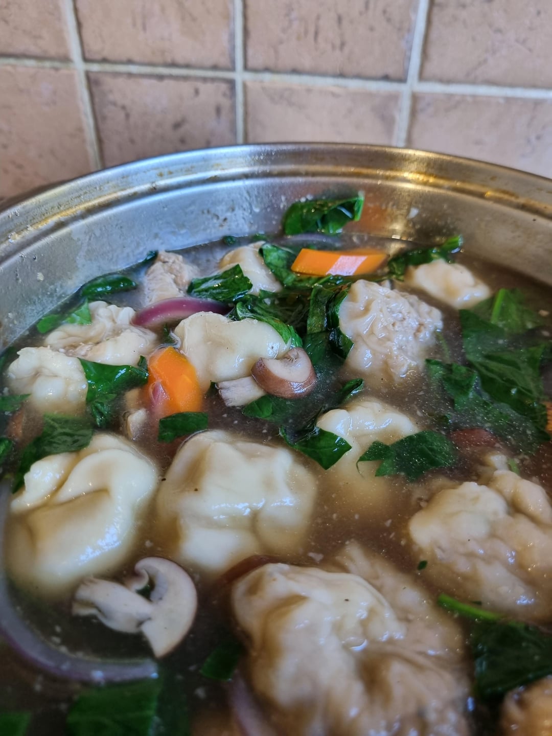 BloodWorried7446 9 months ago looks delicious. I would use the triangle methodhttps://thewoksoflife.com/how-to-fold-wontons/They look over filled for scrunching together. but still i’d smash that. yummy.