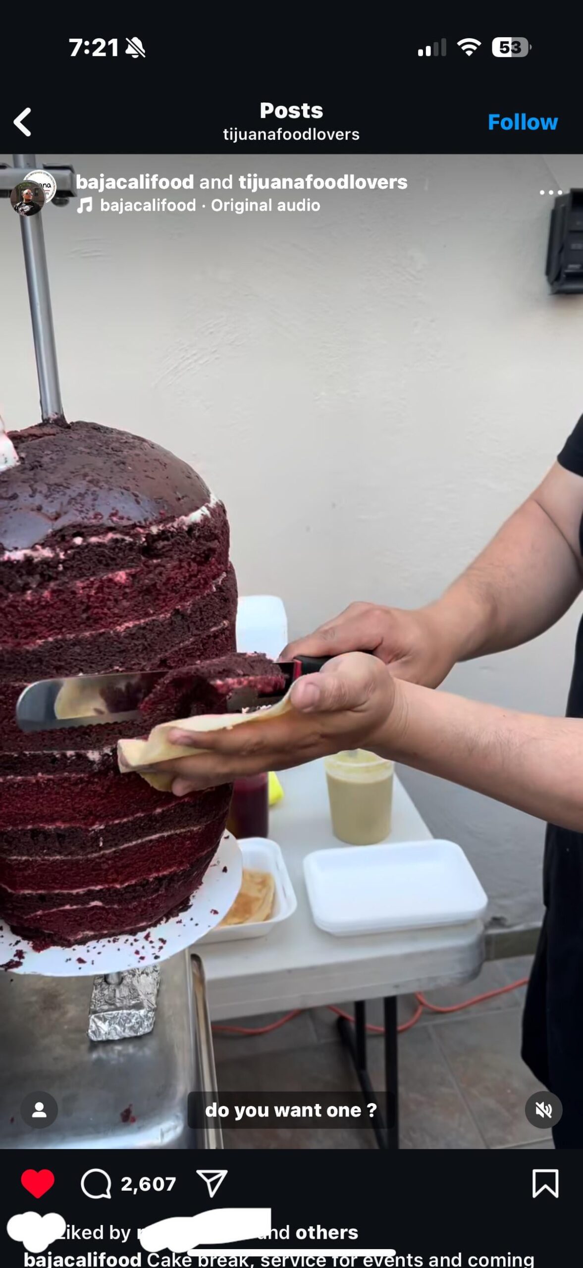 i can’t edit but to be clear, this is a red velevet cake that they cut like it’s shawarma or al pastor – that is what i’m after