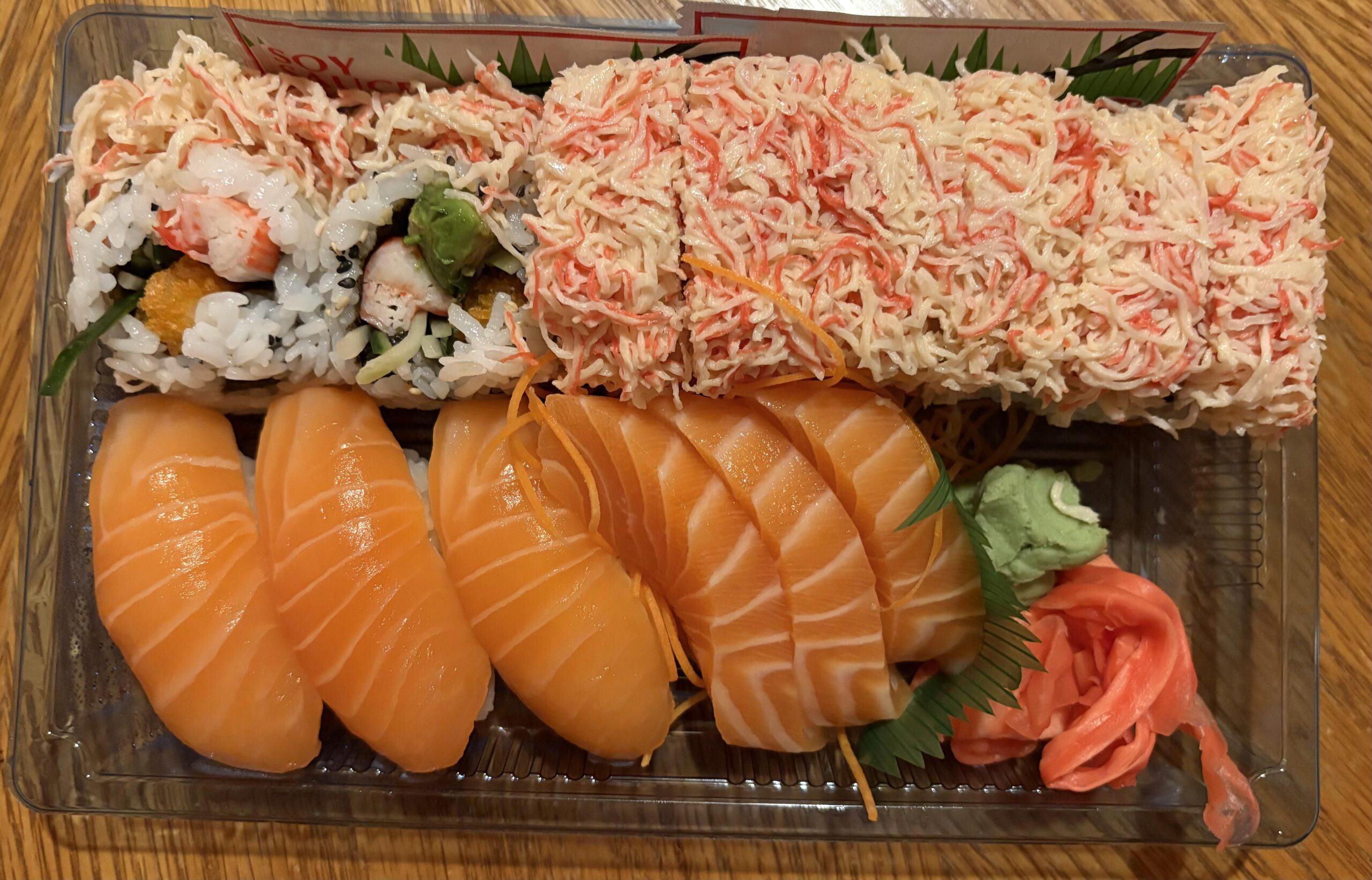 The imitation crab thing looks good. I like when they shred it up instead of leaving it intact. They should have shredded it up for the filling, as well.