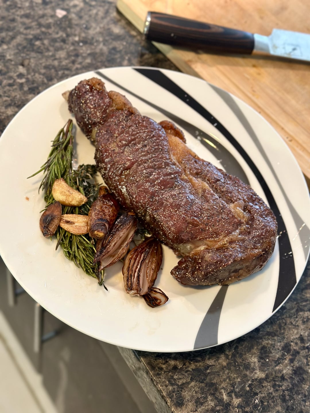 Razor thin char doesnt add much flavor or create a crust. Also, the grey ring doesn’t impact flavor or texture. It’s just oxidized. And wtf is with the burned garlic and charred rosemary? If you can’t eat it, get it off the plate. It’s not adding any aromatics.