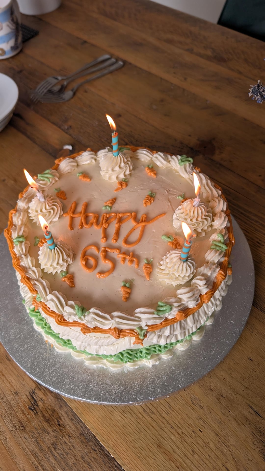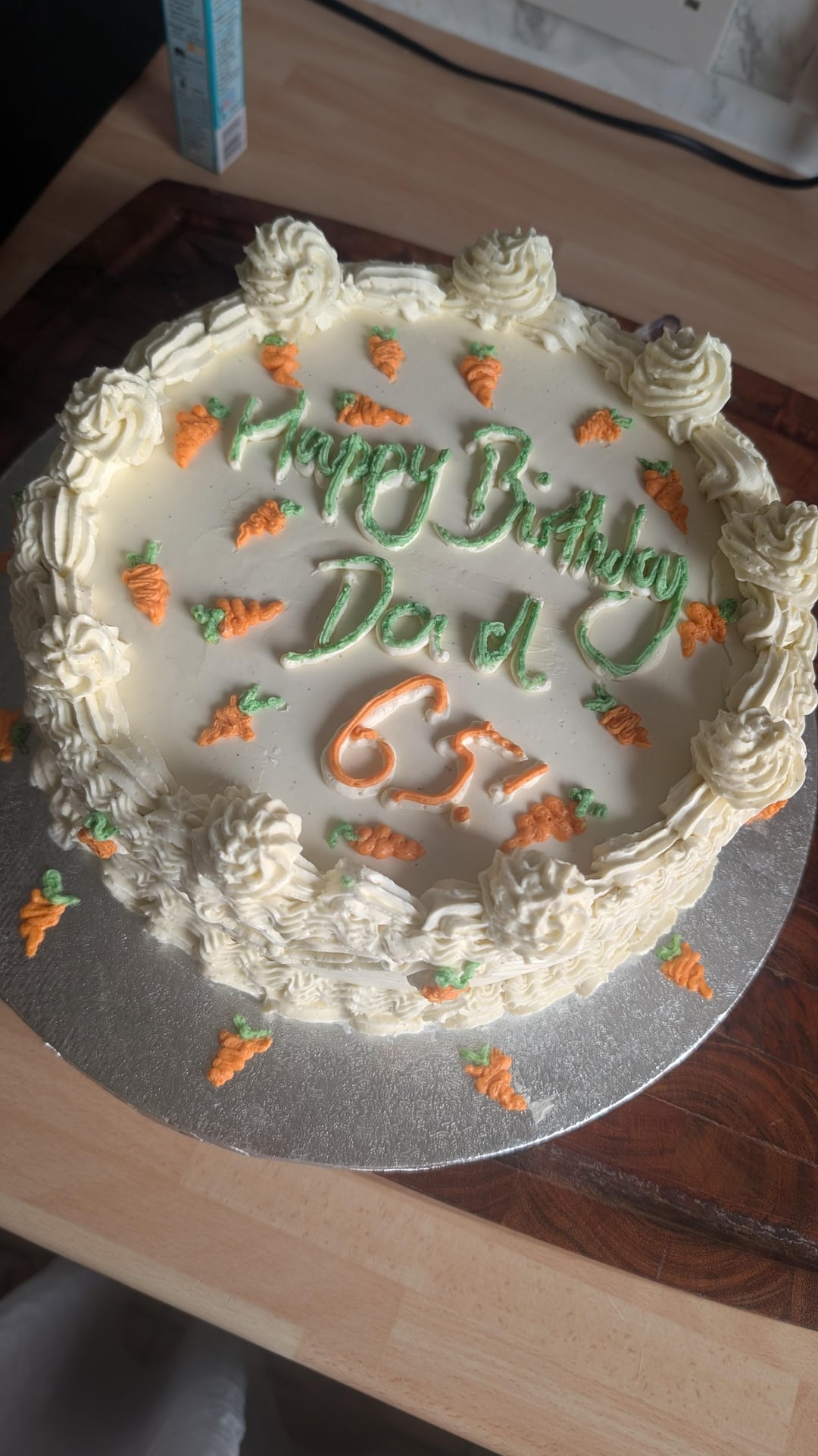 I'm using any excuse this year to make a Lambeth style cake, as I plan to make and decorate our wedding cake next year in June. This was my first attempt and I will admit, I'm very proud of it. It's a carrot cake with a layer of cream cheese buttercream and then vanilla swiss meringue buttercream. I've included the other design attempt before I settled with the final design ( first & second photo)