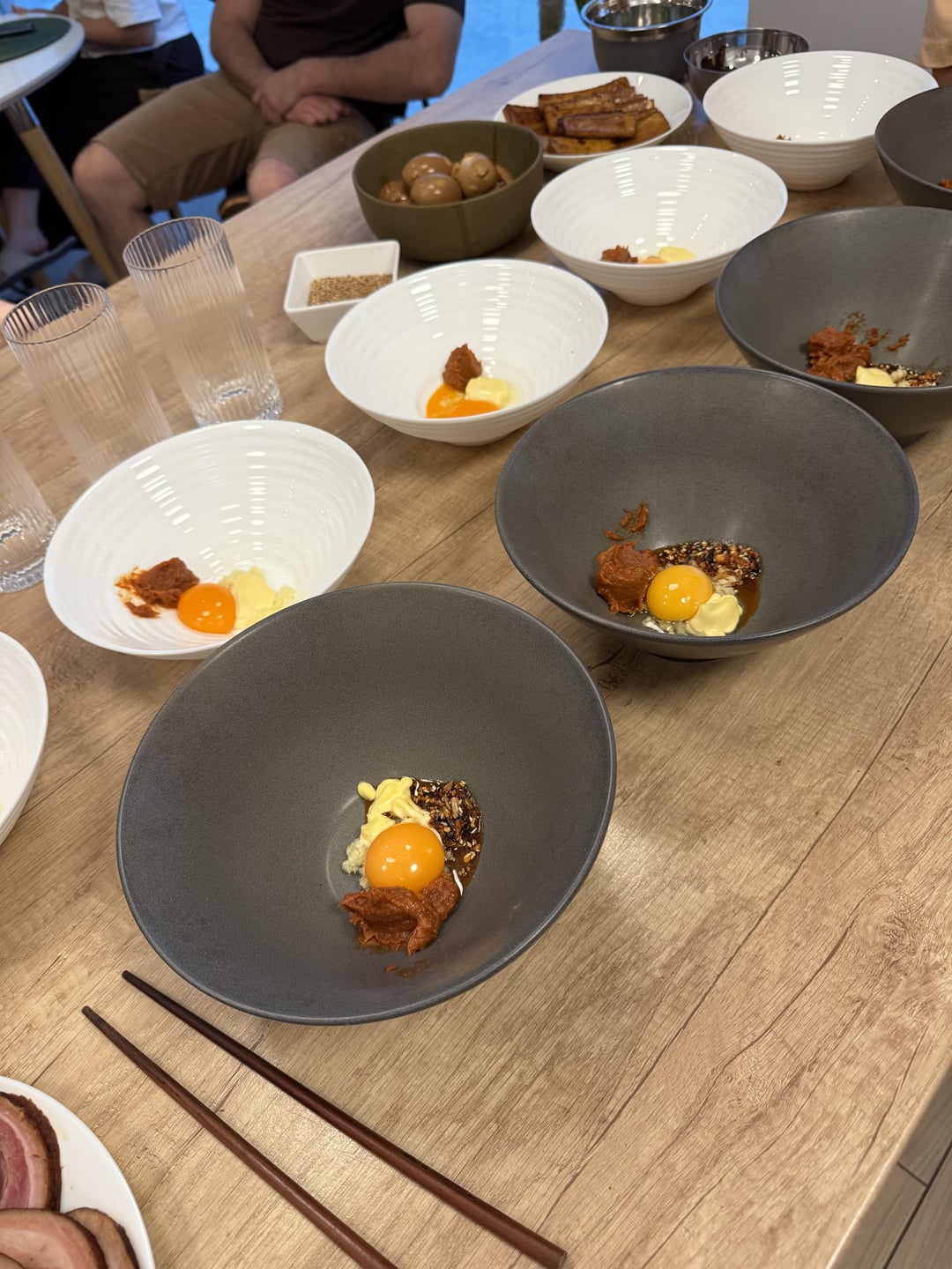 Looks good! What’s in the bowl before broth? Looks like yolk, Kewpie, miso, shoyu tare?