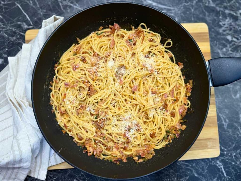 Fukin robbery, came for “creamy”… where is it ??? I don’t read all that, non of that tbh.. I see some dry ass pasta with some parmigiano and some bacon for sure not guanciale . I’m out.