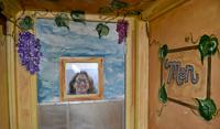 ,Artist Nadine Mitchell added grapes and vines to a formerly white-painted hallway in La Botte Italian Restaurant.
