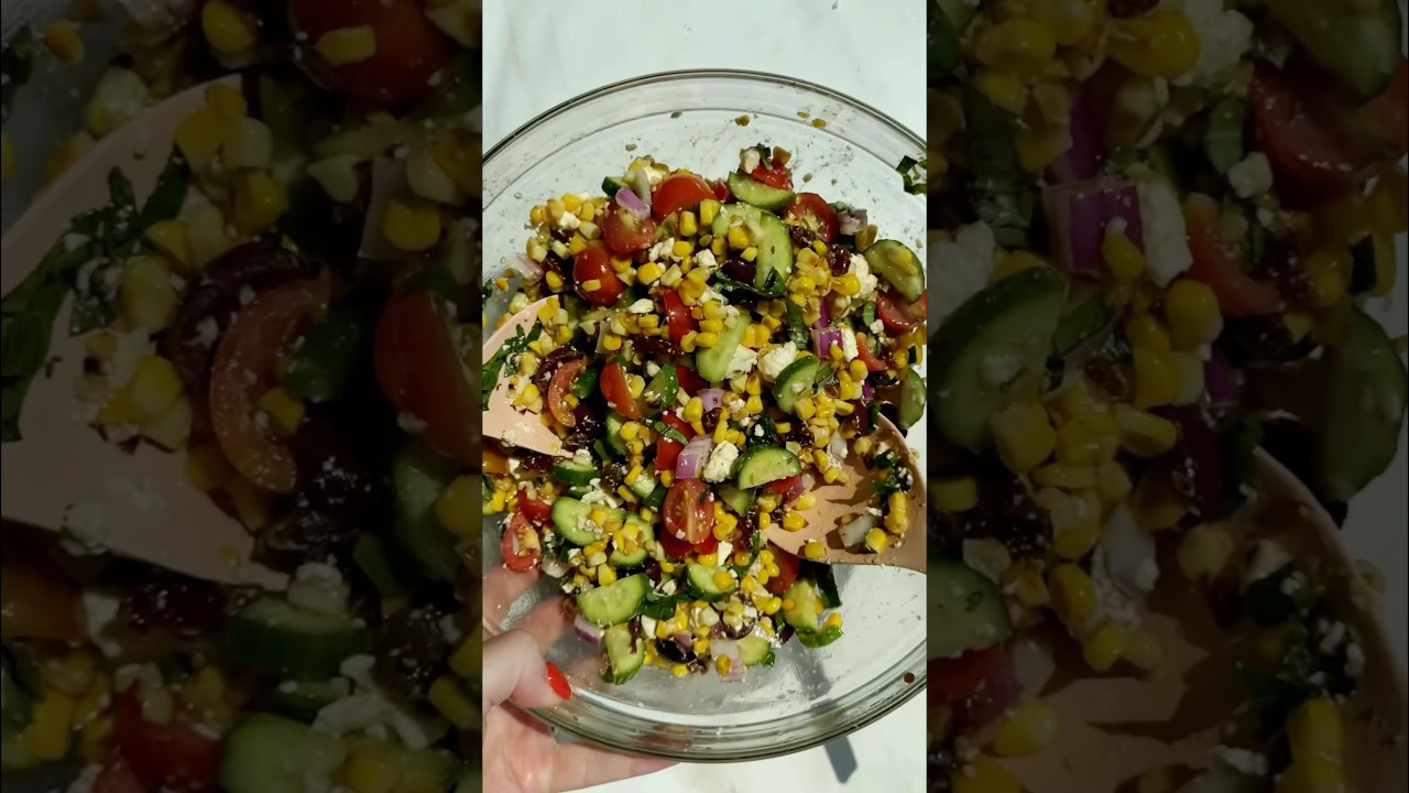 You know it’s serious when it’s made local Minnesota news. Corn sweat, the latest phenomenon as we head into another scorching heatwave. Except this time it’s extra humid thanks to corn. There’s a phrase here in Minnesota that says knee high by the 4th of July. And that is referencing the height of corn. We’ve got a whole section at our state fair dedicated to fresh corn. And don’t forget about corn poop. That’s a thing, too. So do yourself a favor and make this Mediterranean corn salad. Tappy sweating.