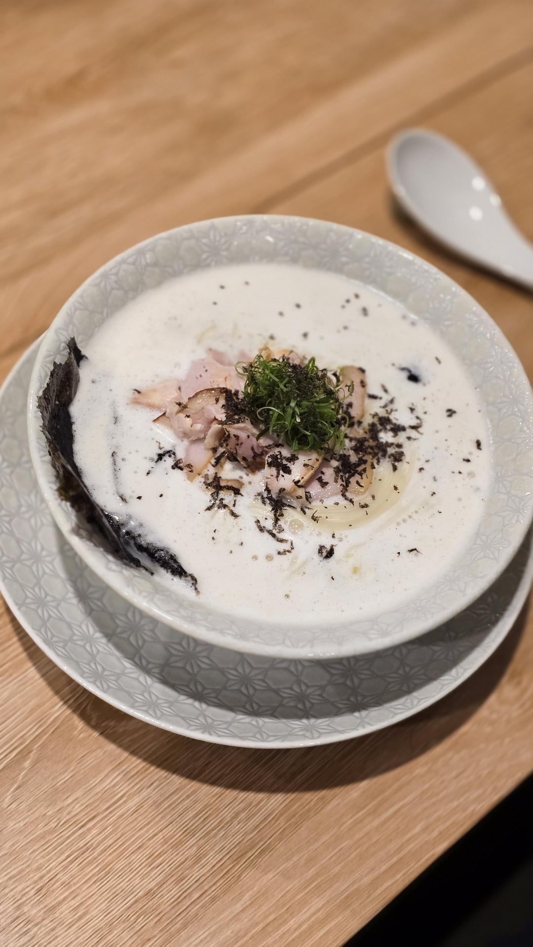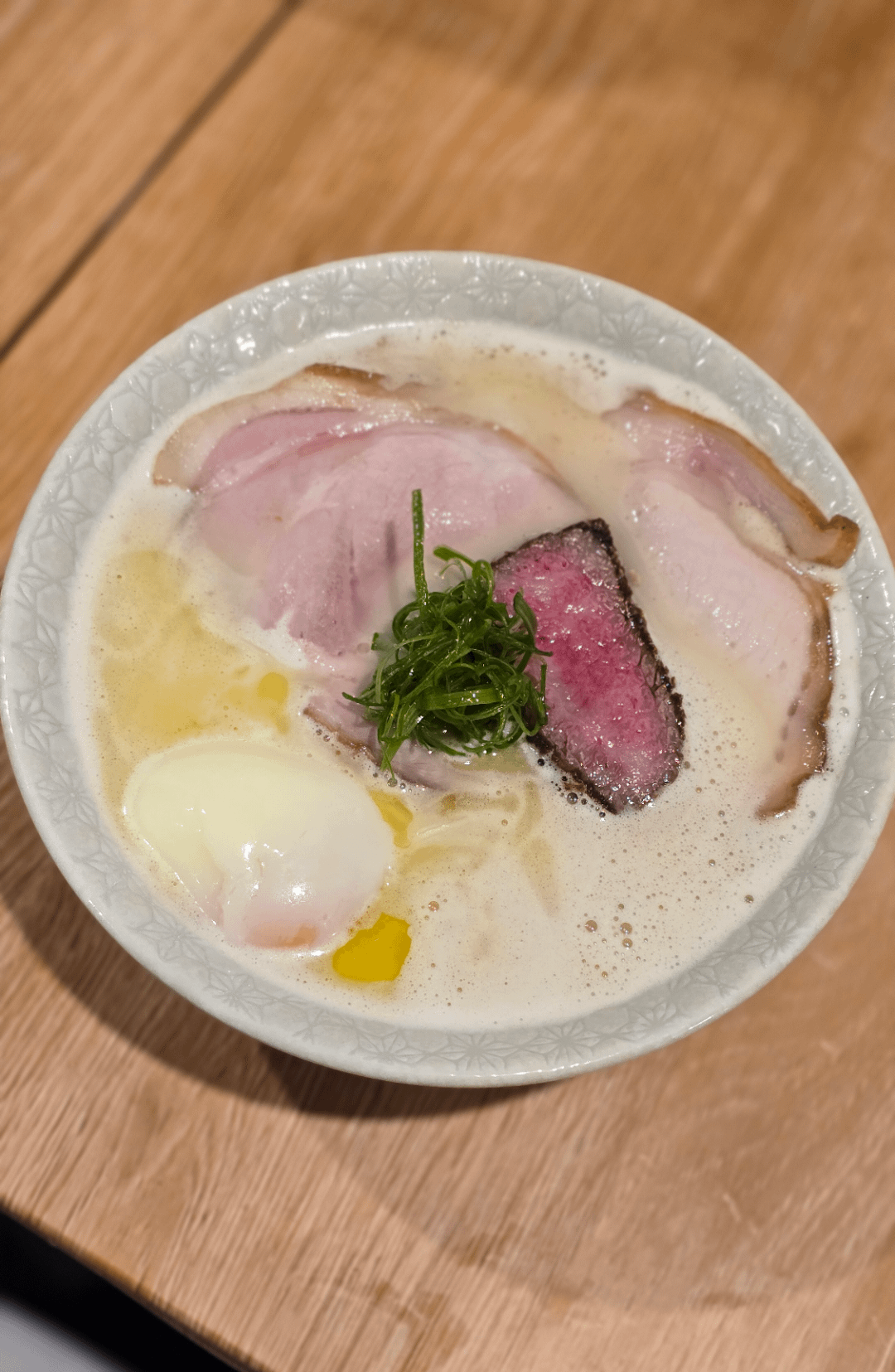 The first one has pork neck, pork loin, chocolate wagyu ribcap chashu and onsen tamago and high quality truffle oil