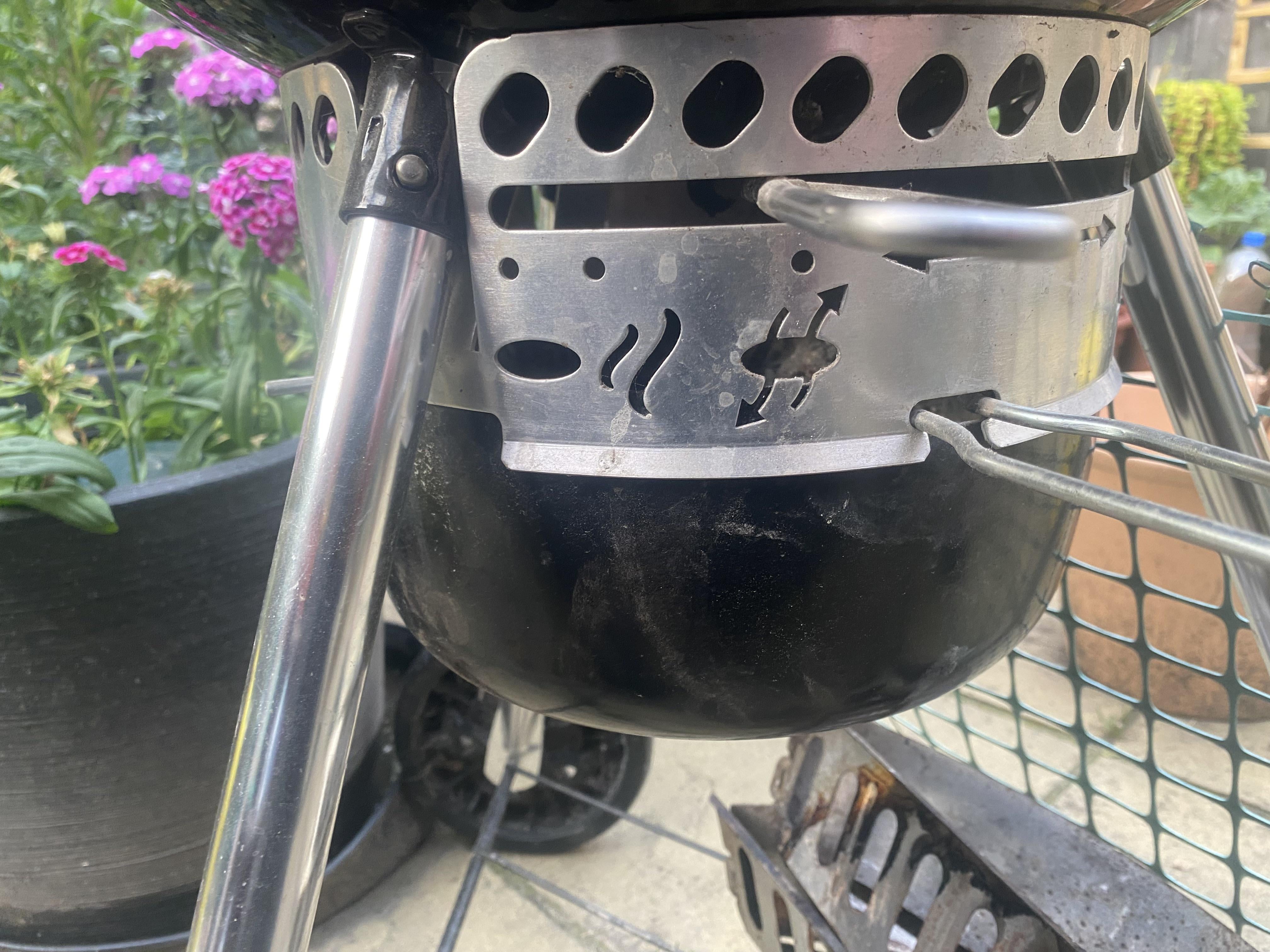 I followed a YouTube video and made my own markings. I turned the Weber upside down, moved the lever to mark 1/4 open, 1/2 open, and 3/4 open. I then etched it in with a grinder. I use them to control temp for low and slow and then open up to sear.