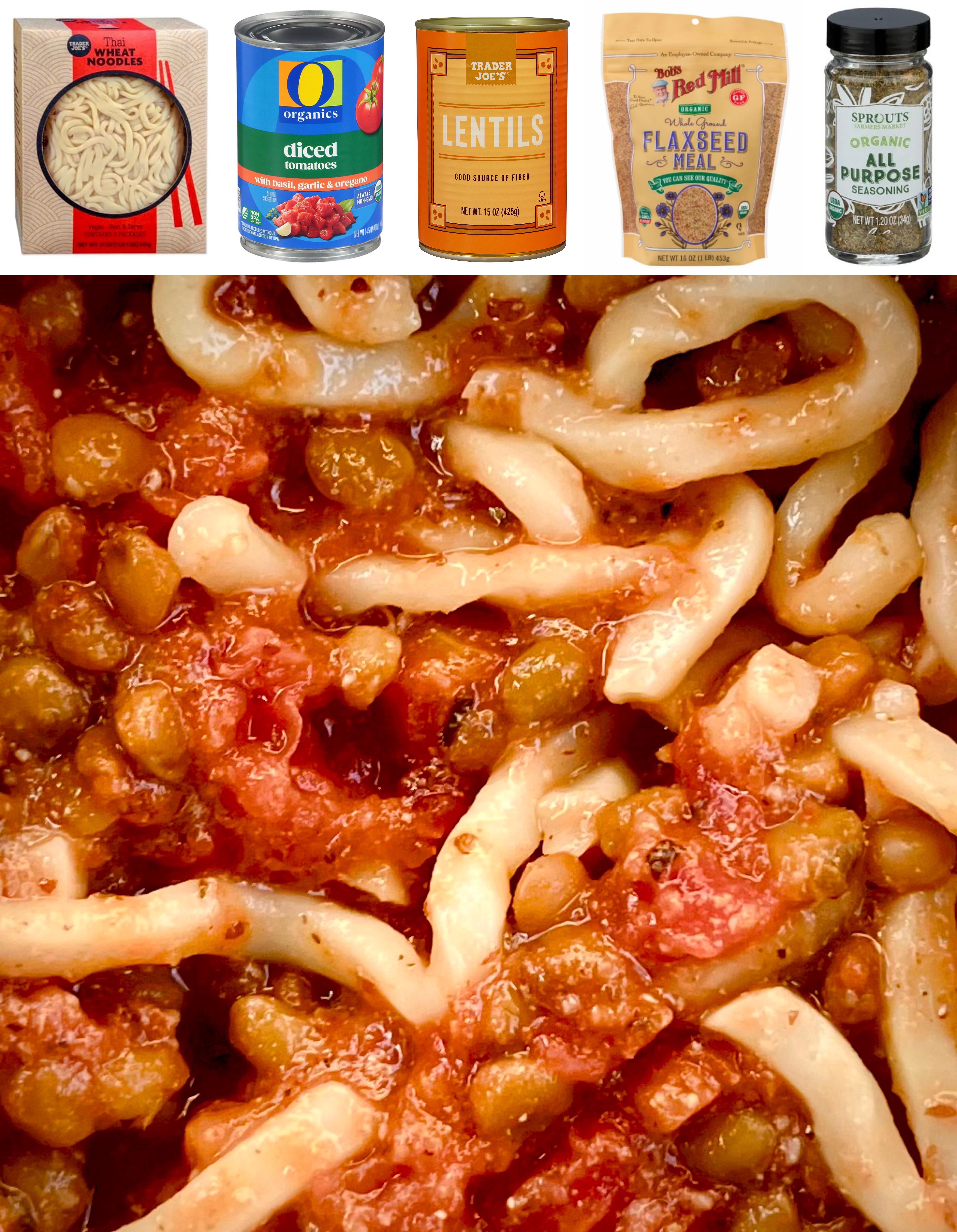 In a microwave safe bowl with lid, place one packet of noodles and an undrained can of diced tomato
