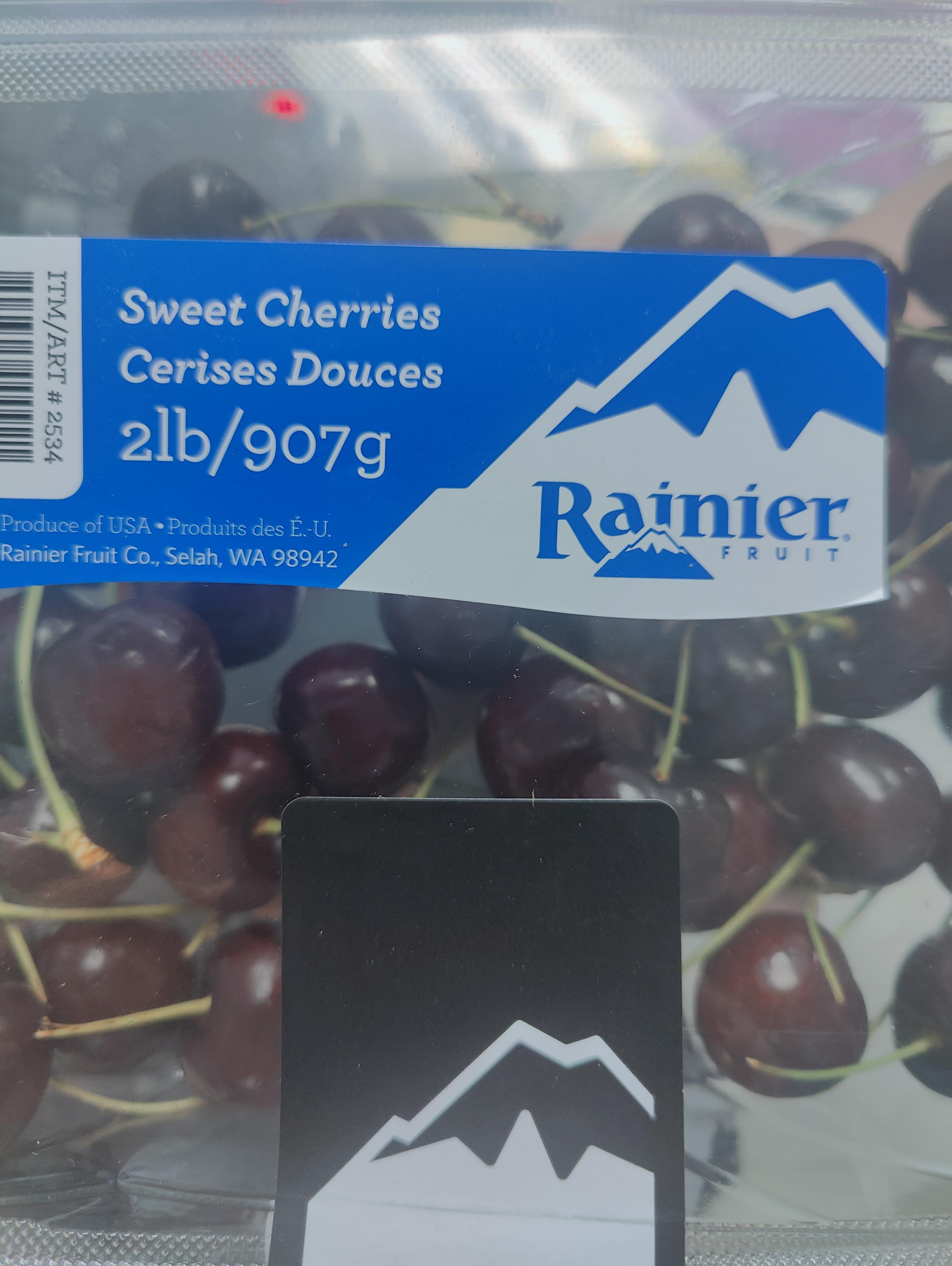 There is a company called rainier fruit that sell the dark red cherries, which may be what OP had.