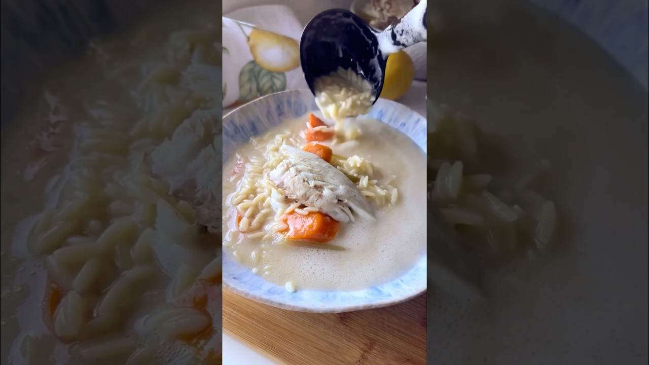If a lemon is comfort, then this is the version that speaks straight to my soul. Avo simple, honest, and my absolute favorite. Start with the vegetable stock of onion, carrots, potatoes, and celery. Simple. Then gently boil your beautiful. Snapper is my favorite and my mother’s too. Pass that rich golden stock through a sie. Then add kitharaki. You can use rice, but for us, it’s always been this way. Now comes the avo. Whisk the egg whites until light and frothy. Then add in the egg yolks. Add plenty of lemon juice like we always do. Then slowly temper with hot soup, whisking quickly. We’re after a smooth and silky result. Pour the avoir through. Let it sit so it can thicken just enough to become a velvety bowl of comfort. Add some vegetables and fish to your bowl and ladle over the soupa. I can’t even begin to explain how much this dish takes me home. If there’s one thing that tastes like childhood, like being wrapped in warmth and love, this is it.