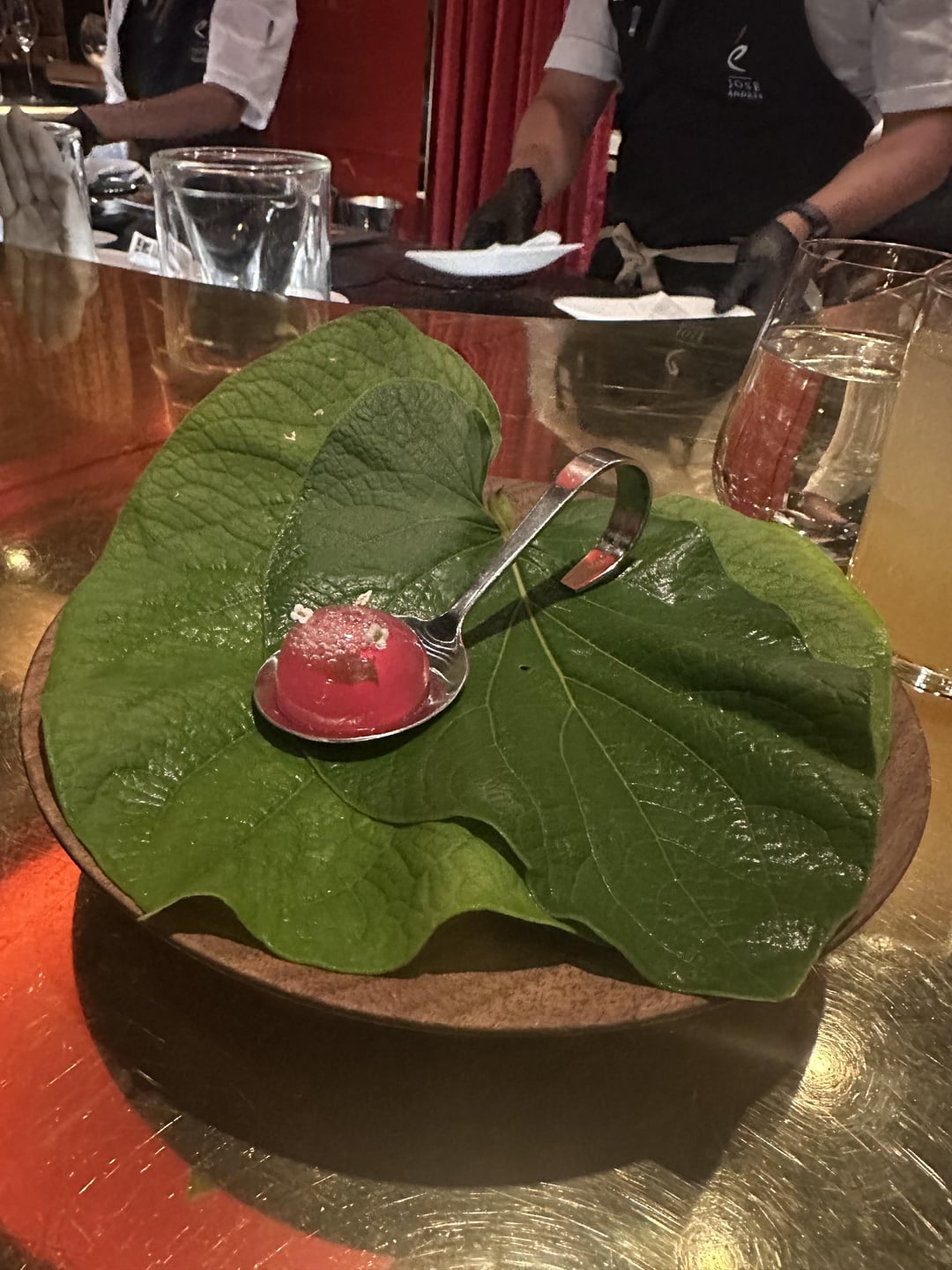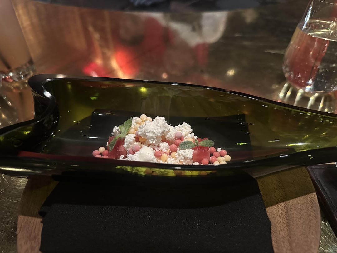 -carbonated cocktail sphere. I don’t drink alcohol so they were kind enough to give me a n/a version but everyone else got cava spheres with compressed melon on the inside.