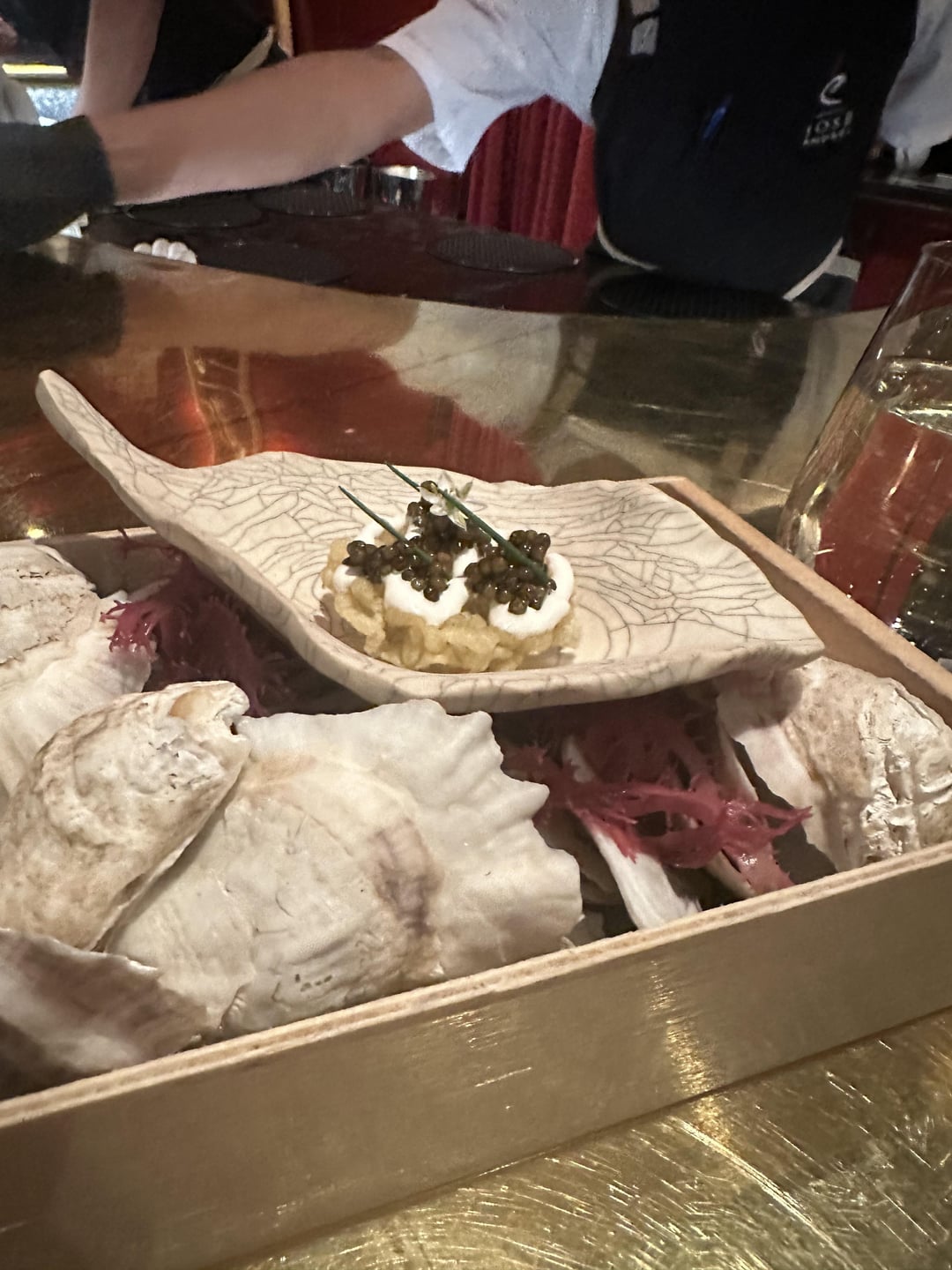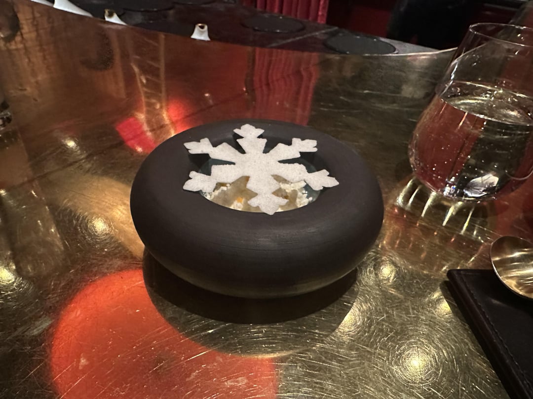 -crispy oyster snack. Made from crispy rice and was very delicate. We were told to commit to our bite to avoid making a mess. Sage advice.