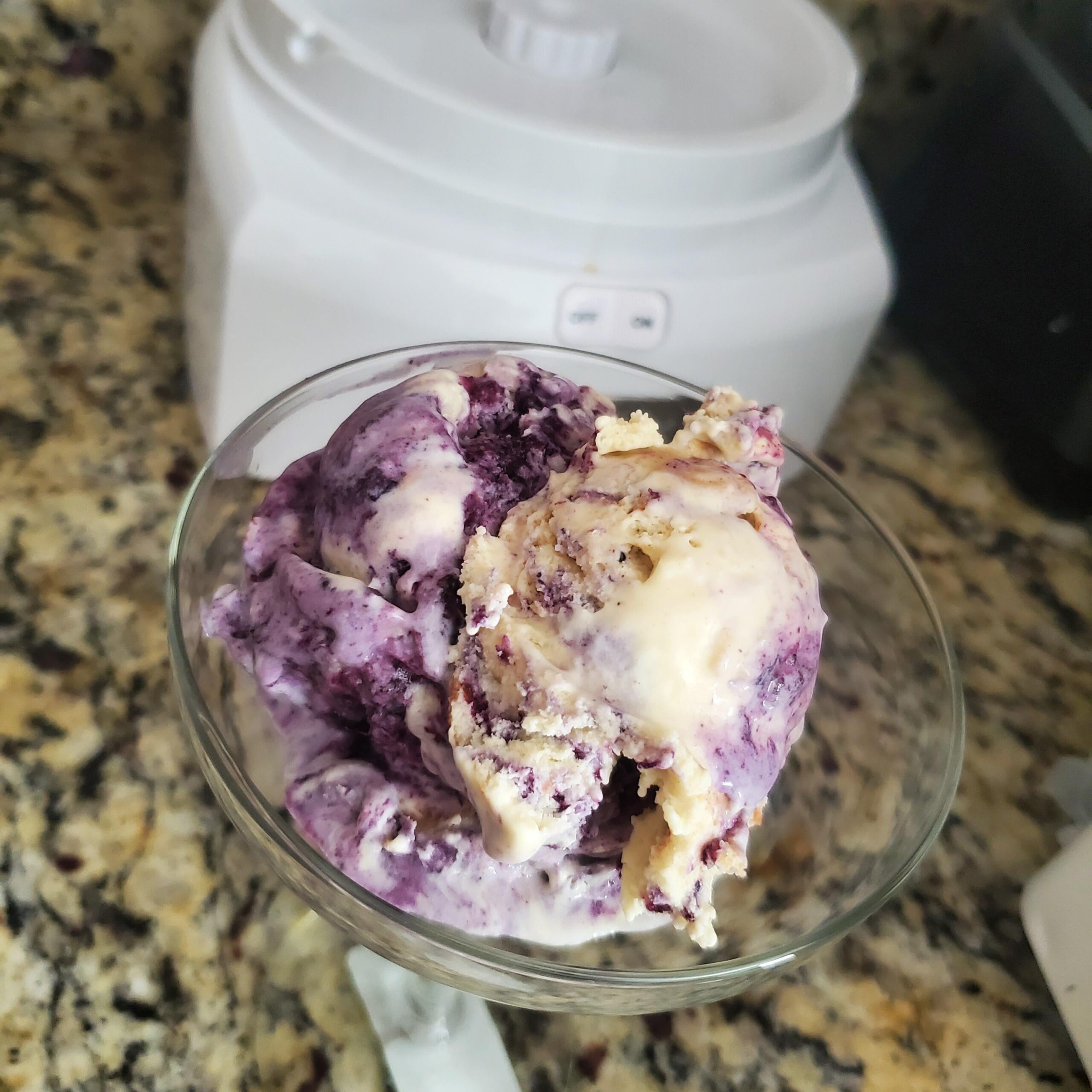 I have a new neighbor, and I wanted to welcome them the right way- with homemade ice cream. I like to use cinnamon in my blueberry pie filling, so I added it to the vanilla base and the pie crust, but I left the blueberries a little tart for the contrast. And for once, I measured everything so I can try this again with cherries next time!