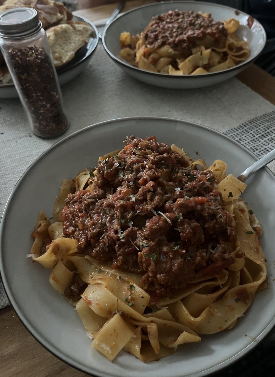 I used Marcella Hazan’s recipe and simmered for 5 and a half hours. Used pappardelle because Giant didn’t have tagliatelle.by Jezyman727 7 Comments Scragly 3 months ago You can make it much faster in a pressure cooker or instant pot. Beneficial-Year1741 3 months ago Looks great helloimnaked 3 months ago Looks fantastic for a first time. Nice job Samurai-Sith 3 months ago That looks amazing – and great choice for a recipe. GhostOfKev 3 months ago Looks good. Finish the pasta in some sauce next time so it absorbs and sticks whenyoudieisaybye 3 months ago Honestly, doesn’t look like a bolognese to me.These are some weird verbs which don’t belong there. The texture is not right, maybe your meat is grinded too fine, hard to tell.Also you should mix it properly before serving and add some cheese on the top. It seems you added some, but it’s not nearly enough KameRyuTheo 3 months ago It’s called “ragú” , bolognese is just one of the way to make it 😉 we got different versions of ragú in every Italian region , nice looking anyway 🫡