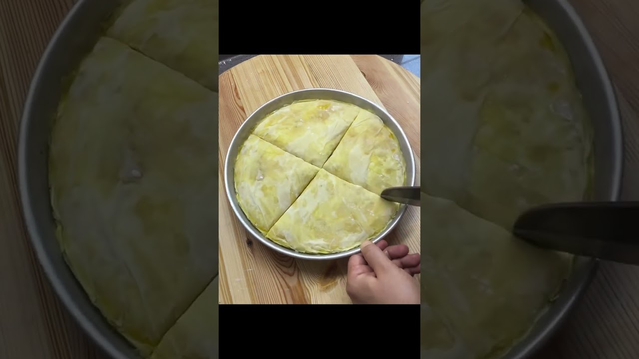 Öncelikle yufkamızı serelim ortasına tepsimizi yerleştirip yuvarlak keselim..15 adet yuvarlak yufkamızı üst katı için ayıralım.Tepsimizin tabanını hafif yağlayalım yuvarlak 2 adet yufkamızı yerleştirelim yağlayalım yandan çıkan parçalarıda 2 3 katta bir yağlayarak yerleştirelim ortasına fıstığımızı serpelim ve üst katmanı için her yufkada bir hafif yağlayıp tatlımızı tamamlayalım daha sonra videoda göründüğü gibi bıçak yardımıyla yanları alta katlayalım tatlımızı önce 2 sonra 4 sonra 8 daha sonra 16 eşit parçaya bölelim kalan yağımızı üzerine gezdirelim önceden ısıtılmış 160 derece fırında kızartalım (ara katları kontrollü pişirelim )Fırından aldığımız tatlımıza soğuttuğumuz şerbetini dökelim🫠
