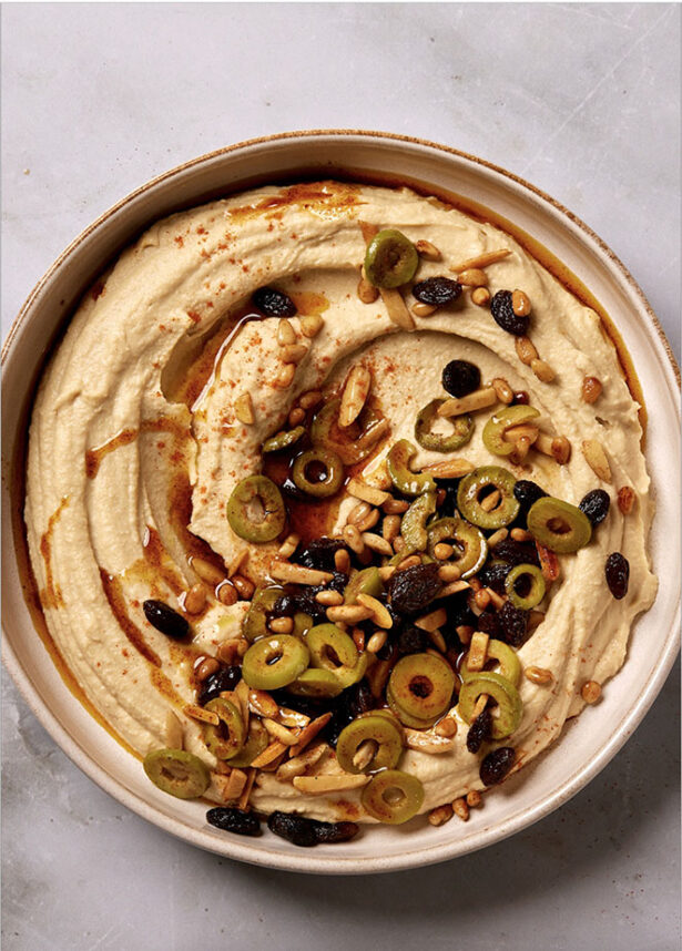 One recipe Freedman loves is hummus topped with spiced nuts, olives and raisins. It’s a fun meal to dip with a great combination of flavors. Plus, she makes her own hummus. That recipe is below.