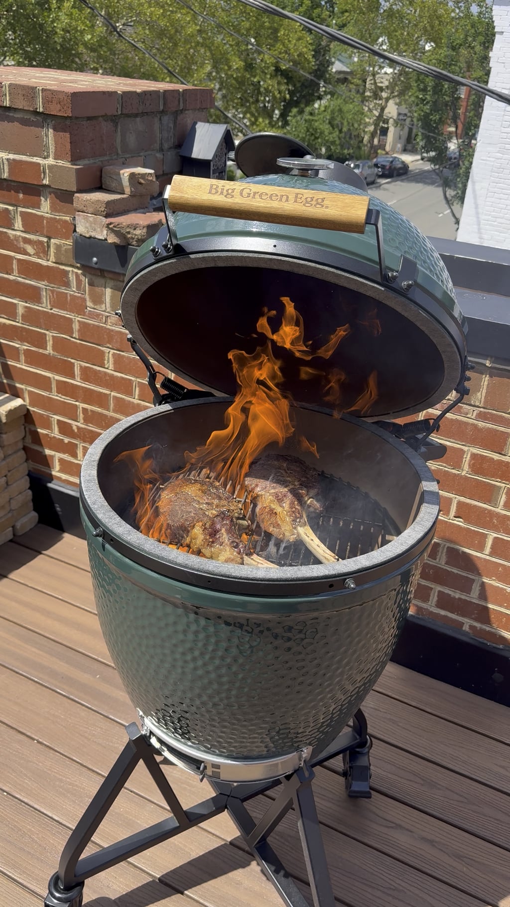 My bud just got a new egg. I have been using my own for about 1.5 years. Is this the optimal way to sear tomahawks? Anyone got any good tips to get a better crust?