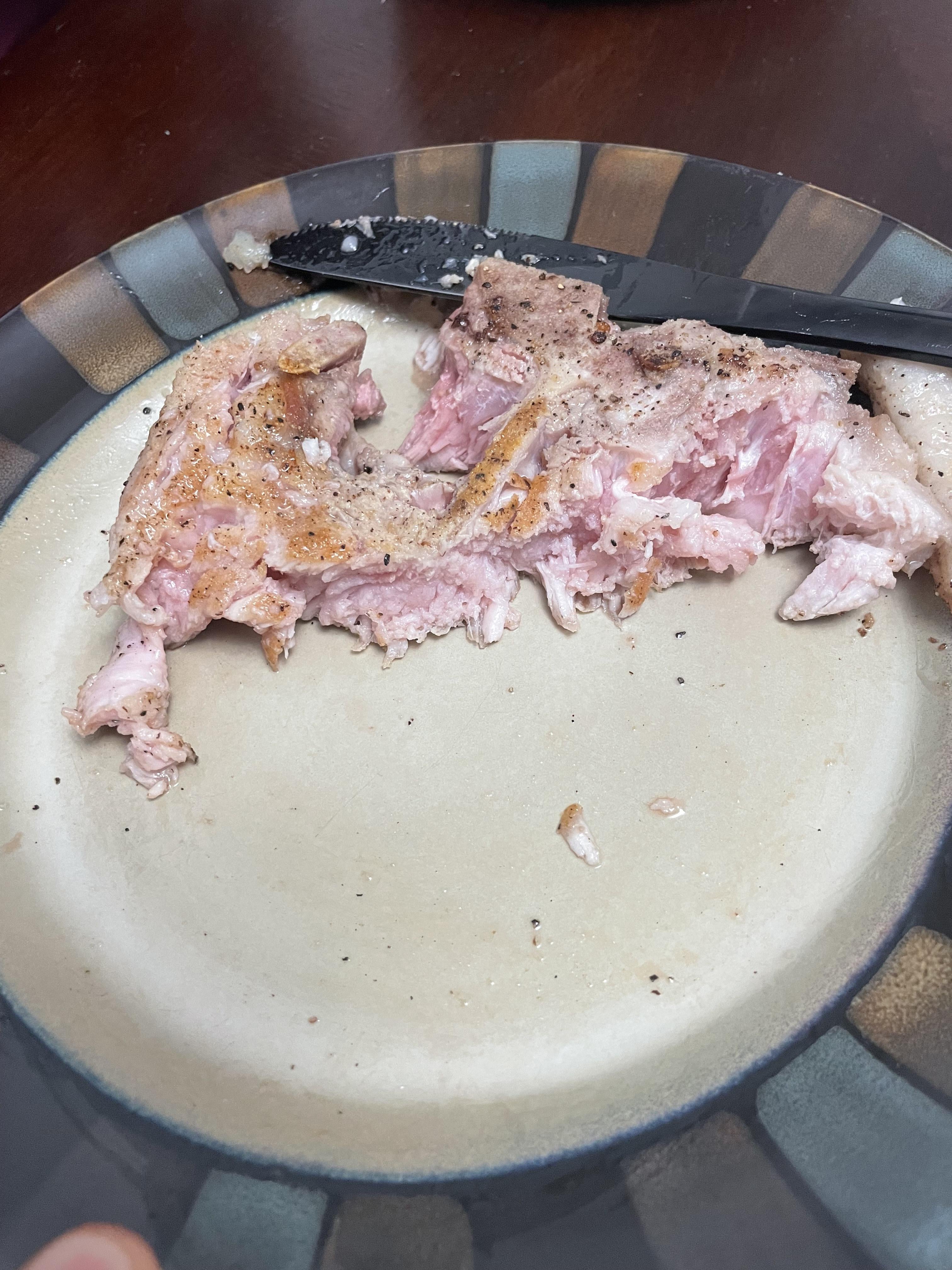 My partner and I are in disagreement whether this pork chop is undercooked.