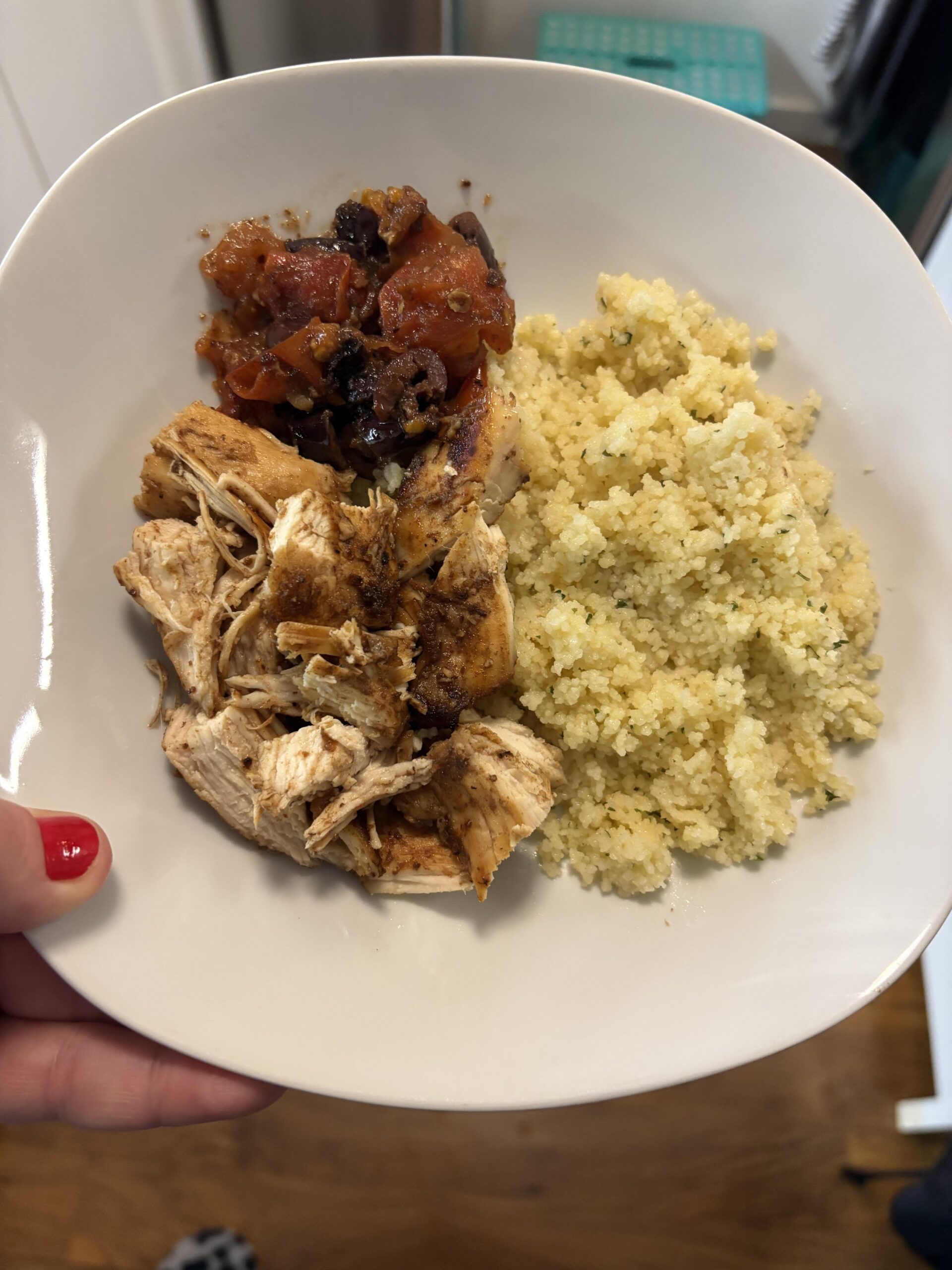 If you’d like any tips, at least half your plate should be veg. Personally – I’d remove a bit of chicken, halve the cous cous + replace it with a wholegrain like brown rice. Then have the rest of the plate veg, like a Greek salad or something 😍😍