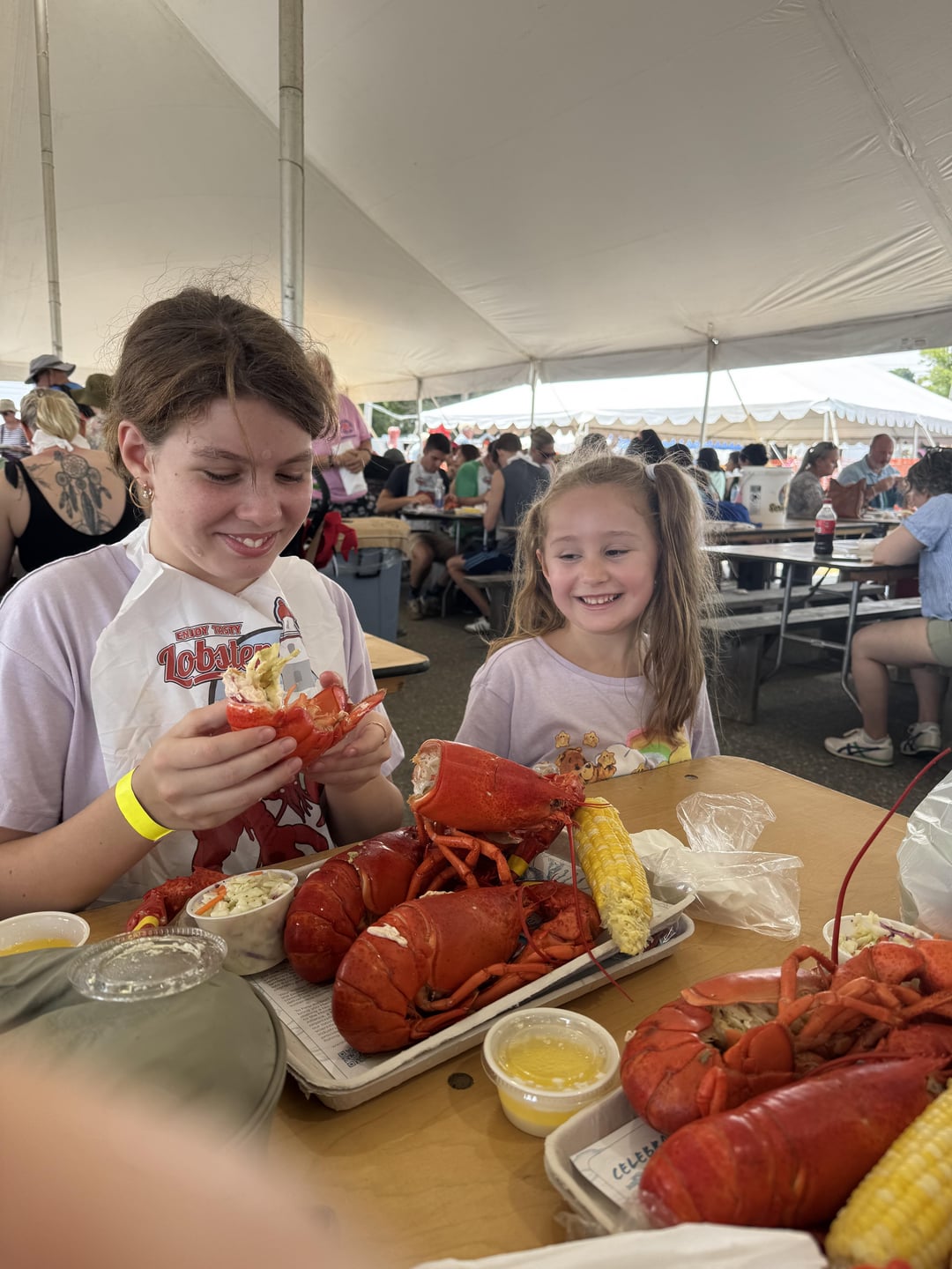 [I ate] Juicy whole lobster with warm butter, sweet corn, and creamy slaw at the Maine Lobster Festival